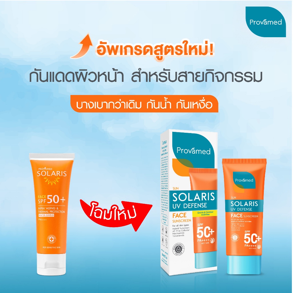 PROVAMED SOLARIS UV DEFENSE FACE SUNSCREEN SPF50+ PA++++ 50ml. - โปรวาเมด โซลาริส ยูวี ดีเฟนส์ เฟซ ซันสกรีน เอสพีเอฟ 50+