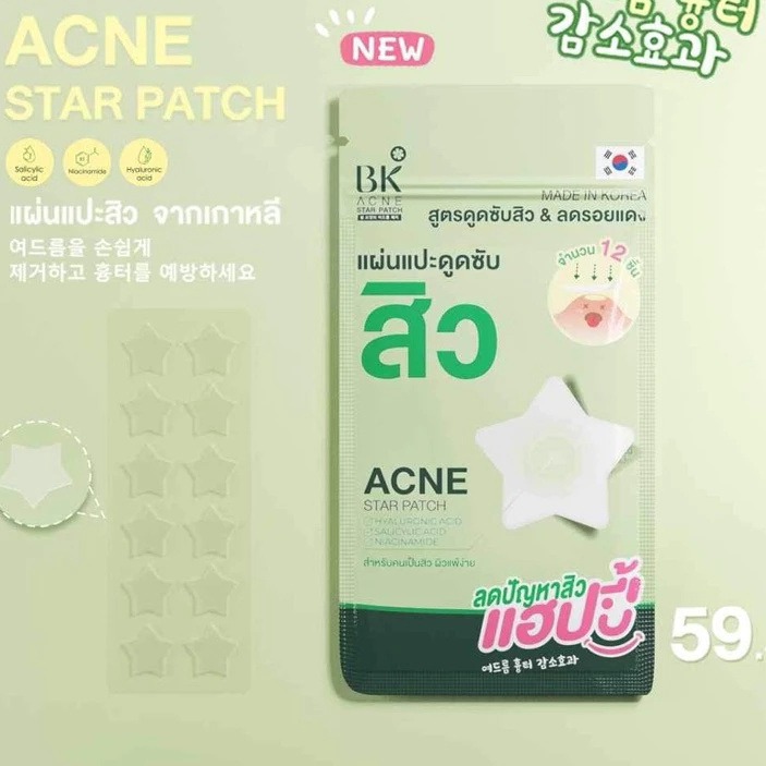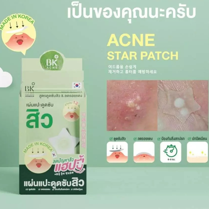 (กล่อง 6 ซอง) BK ACNE STAR PATCH แผ่นแปะสิว (ขนาด 12 มม.)