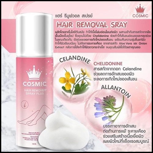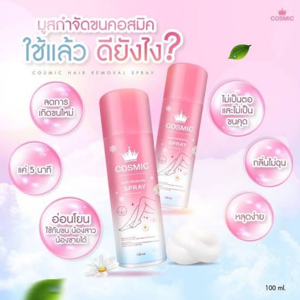 (100ml/กระป๋อง) Cosmic hair remover คอสมิค มูสกำจัดขน มูสโฟมกำจัดขน ฟองนุ่ม กลิ่นหอมอ่อนๆ ไม่ฉุน