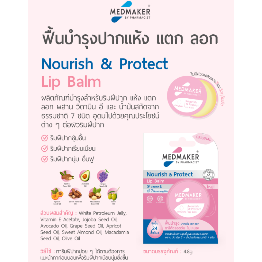Medmaker Nourish & Protect Lip Balm Original เมดเมเกอร์ นูริช แอนด์ โพรเทค ลิปบาล์ม ออริจินอล [4.8 g.] ลิปบำรุงปาก