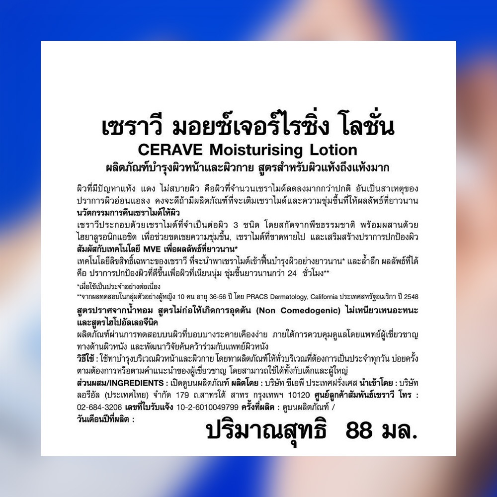 Cerave Moisturising Lotion เซราวี โลชั่นบำรุงผิวหน้าและผิวกาย ขวด 88 ML.