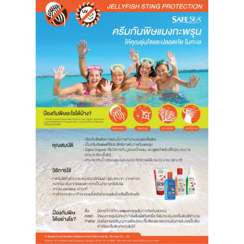Safe Sea ครีมกันแดด ป้องกันแมงกระพรุน SPF50 สูตรสำหรับเด็ก หมดอายุ MAY'28