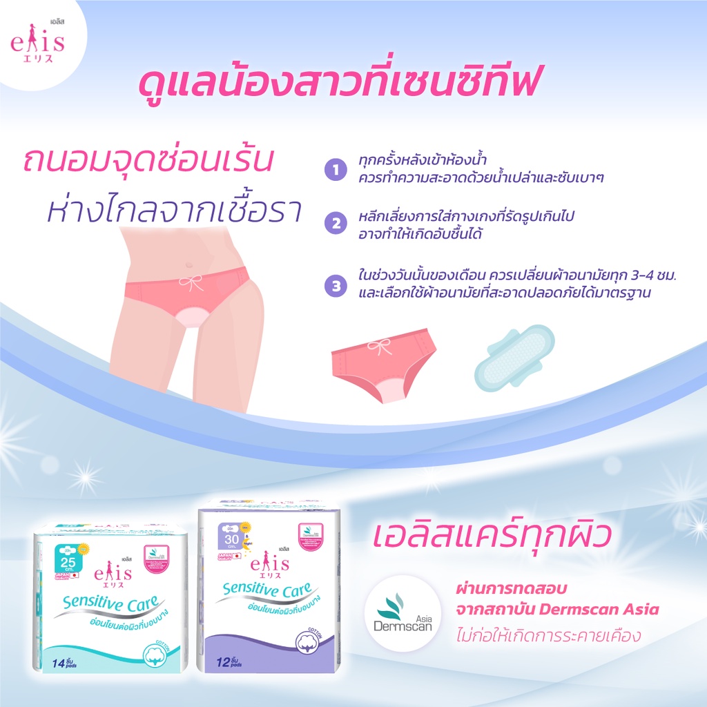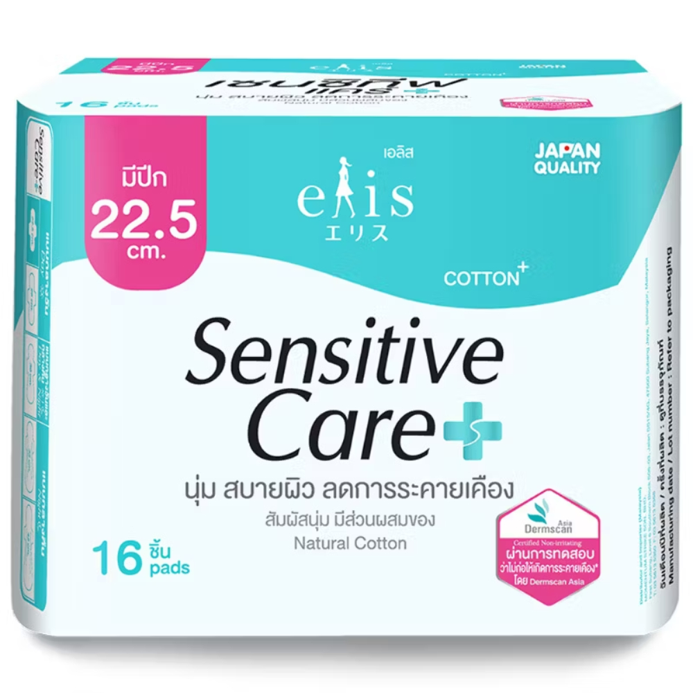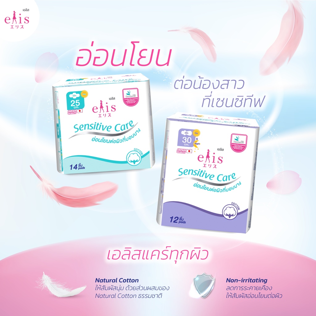 เอลิส ผ้าอนามัย แบบมีปีก รุ่นเซนซิทีฟแคร์ เนเชอรัล คอตตอน Elis Sensitive Care Natural Cotton อ่อนโยน สวมใส่สบาย