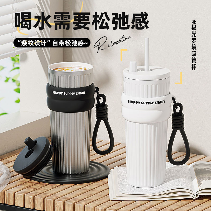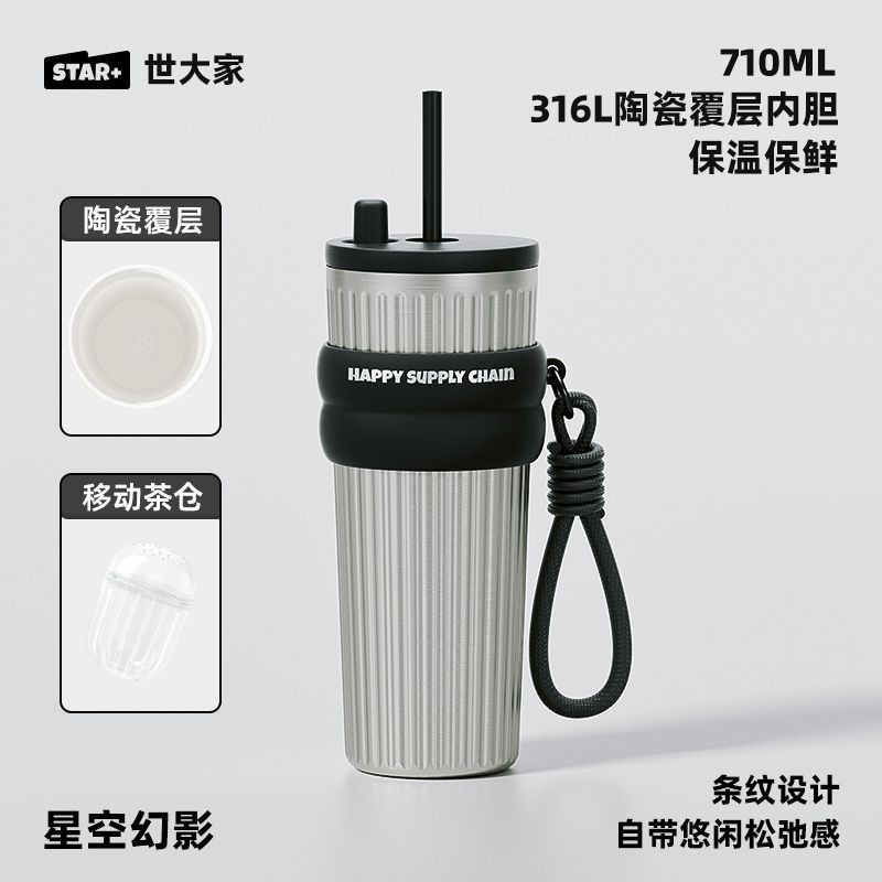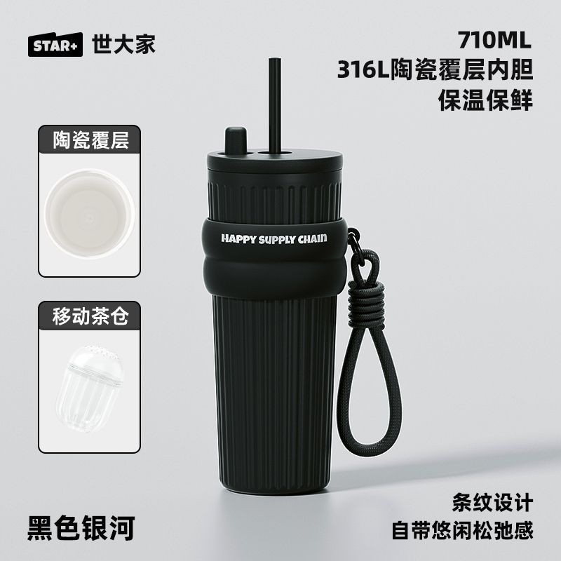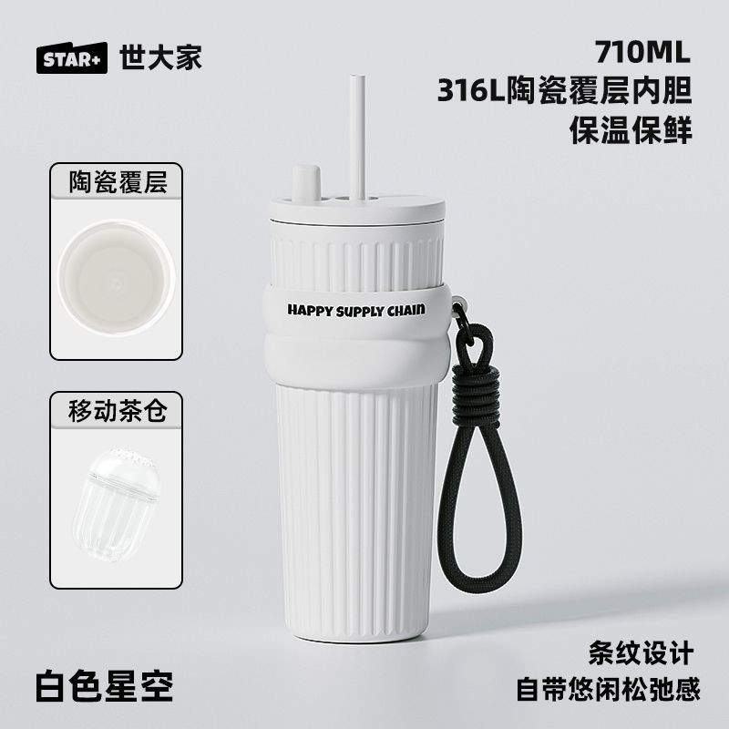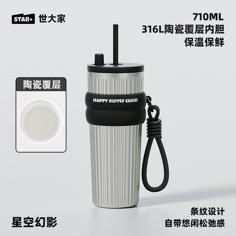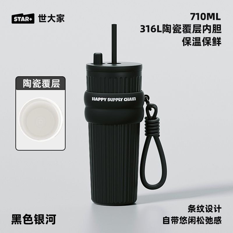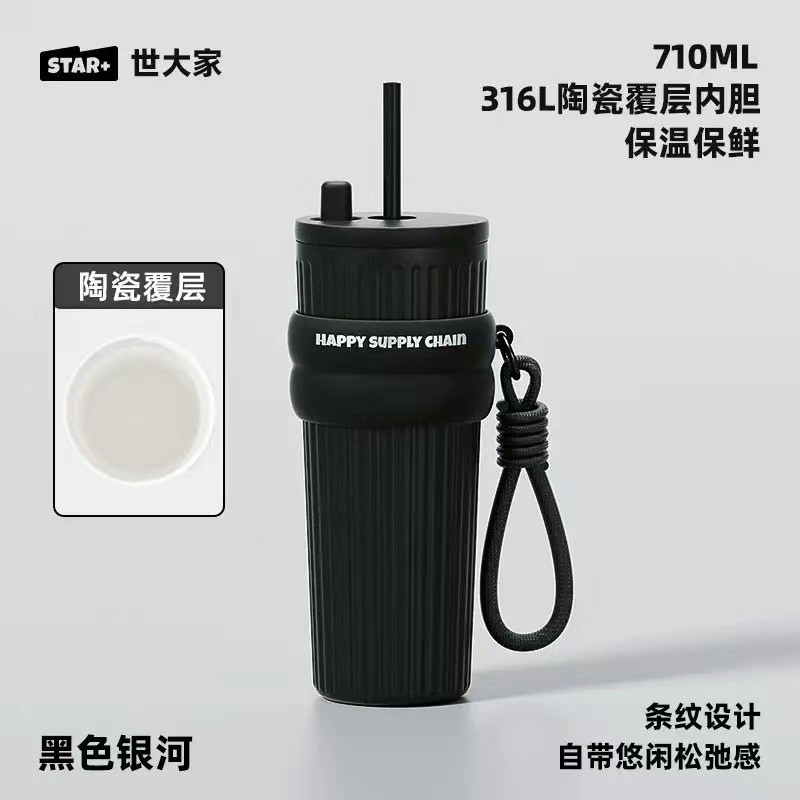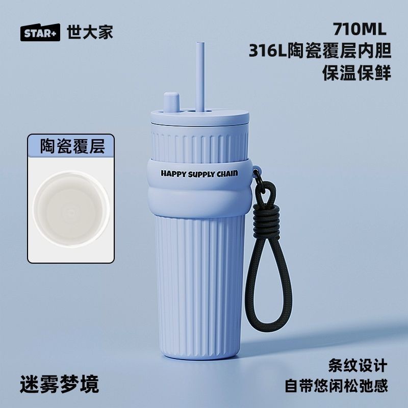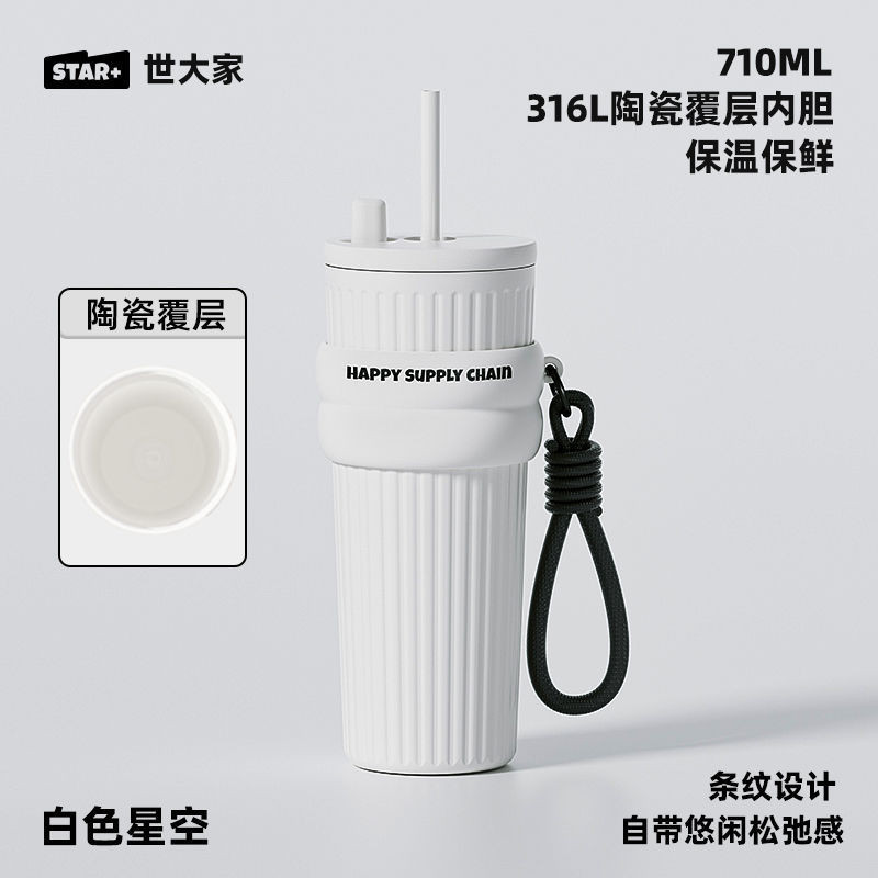 Star + เซรามิค Thermos ถ้วยฟาง Thermos ถ้วย 710ML ถ้วยกาแฟรถ Ice Master ถ้วยเย็นถ้วยแบบพกพา