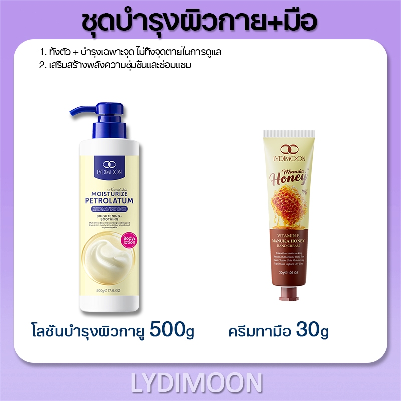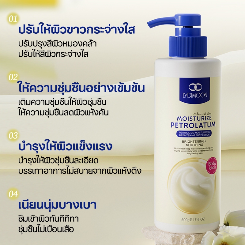LYDIMOON Vaseline ครีมทาผิวขาว โโลชั่นผิวขาว โลชั่นบํารุงผิวกาย ไวท์เทนนิ่งทั้งตัว บอกลาผิวคล้ำเสีย ผิวดูเต 500g