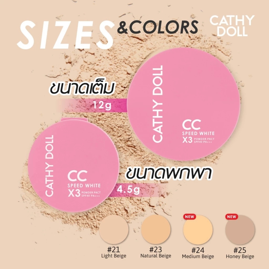 (1 ตลับ) Cathy Doll CC Speed White X3 Powder Pact SPF40 PA+++ แป้งซีซี ติดสปีด หน้าใสX3 (4.5 g.)