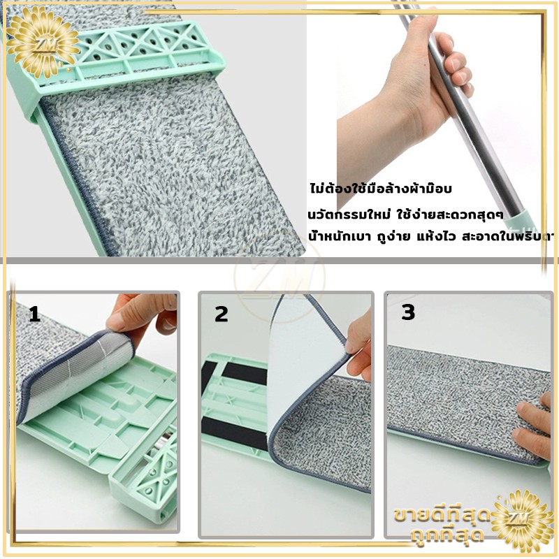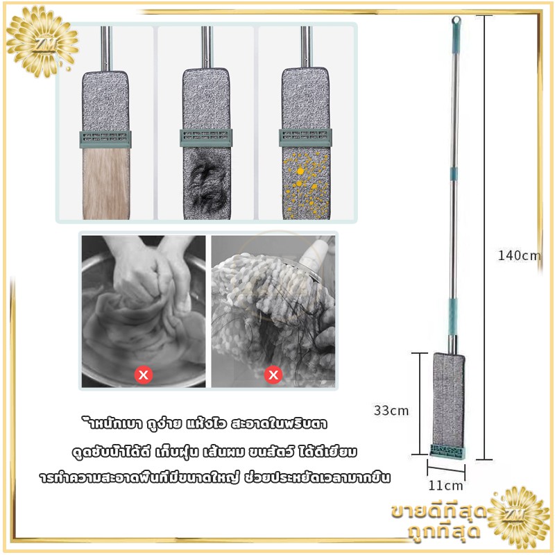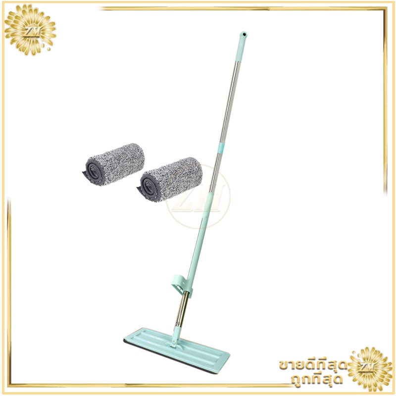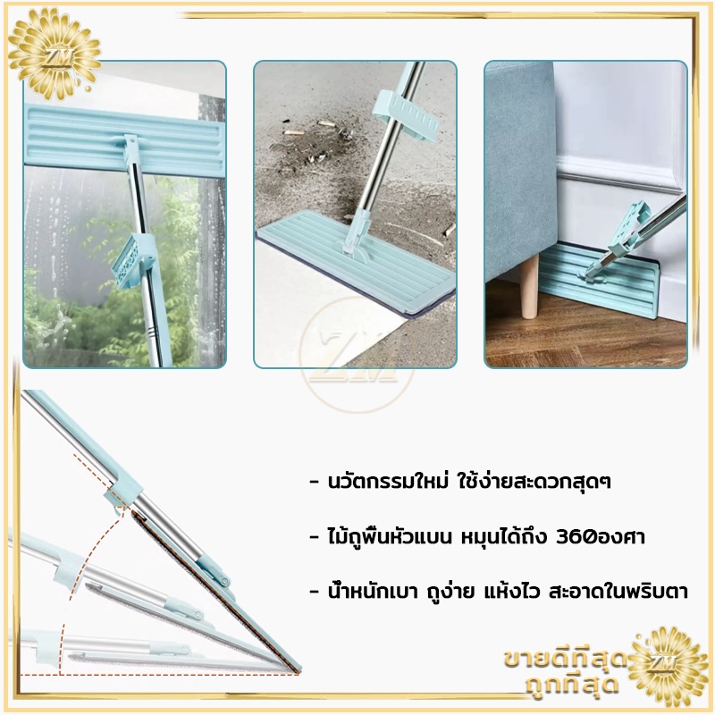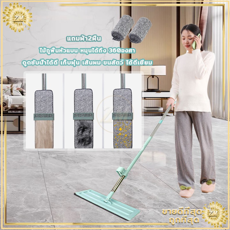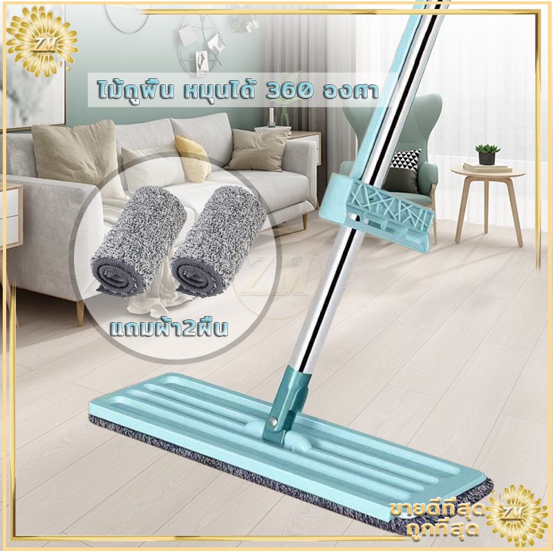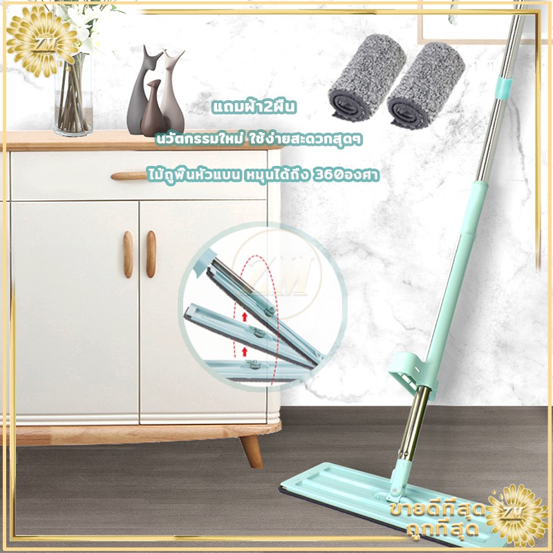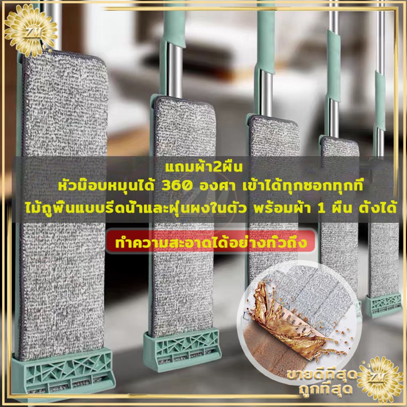 ไม้ถูพื้น ไม้ถูพื้นแบบแบนรีดน้ำ ไม้ถูพื้นแบบรีดน้ำและฝุ่นผงในตัวหมุนได้360องศา แถมผ้า2ผืน ไม้ถูพื้นหัวแบน