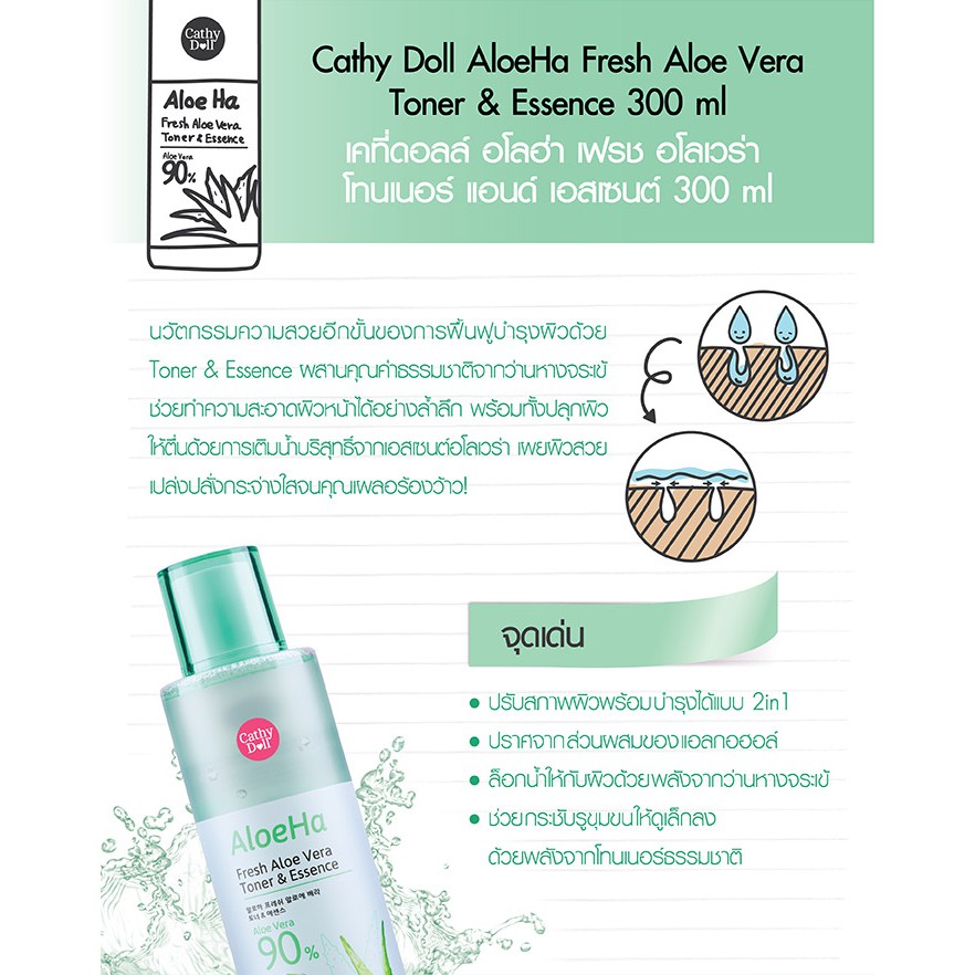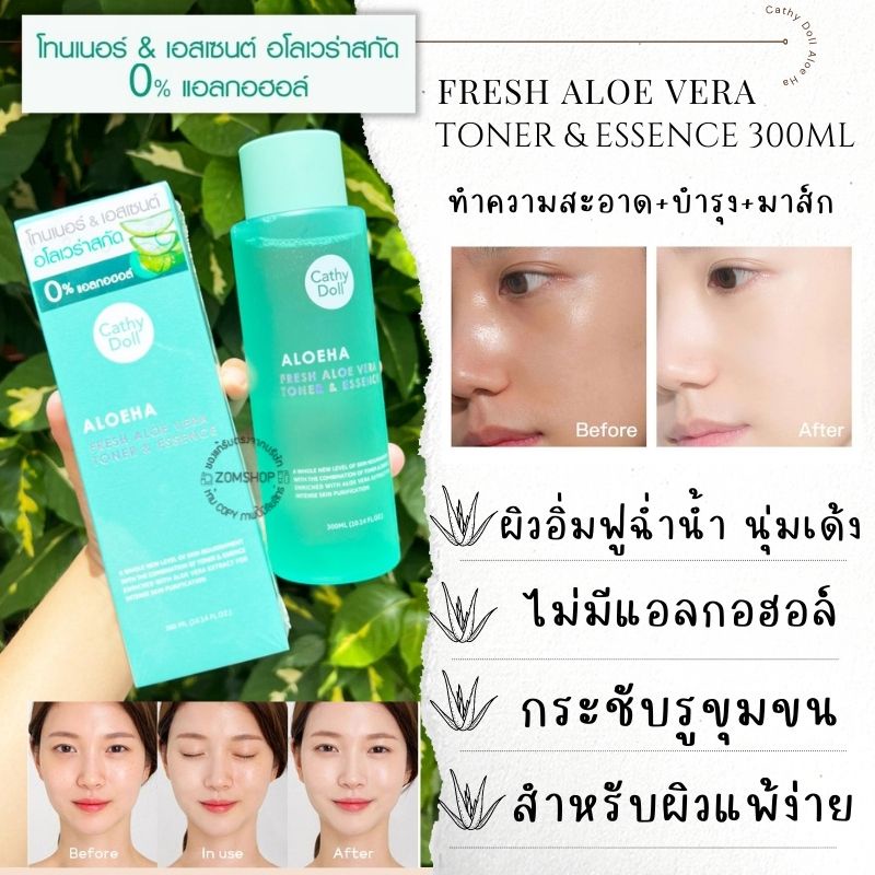 Cathy Doll โทนเนอร์ ว่านหางจระเข้ 3in1【เช็ด+บำรุง+มาส์ก】💦 Fresh Aloe Vera Toner & Essence 300ml