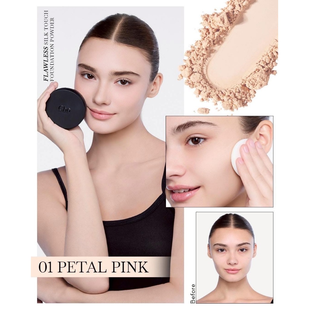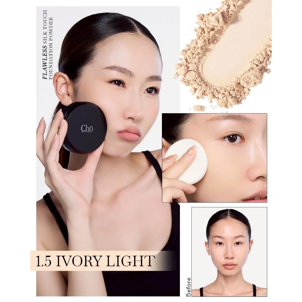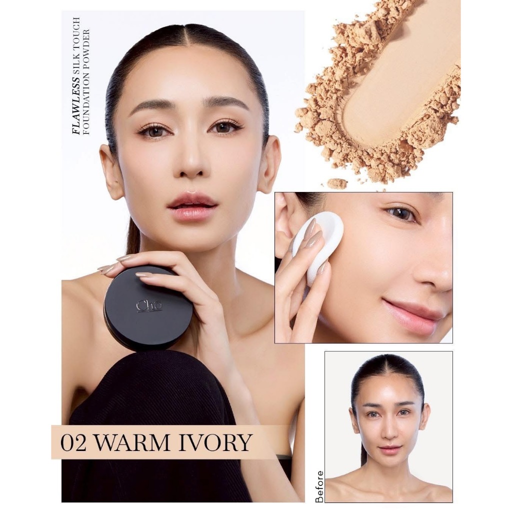 Cho Flawless Silk Touch Foundation Powder/Duo Expert Brush [สินค้ามีให้เลือก 5 เฉดสี] แป้งโช แป้งพัฟผสมรองพื้น แปรง