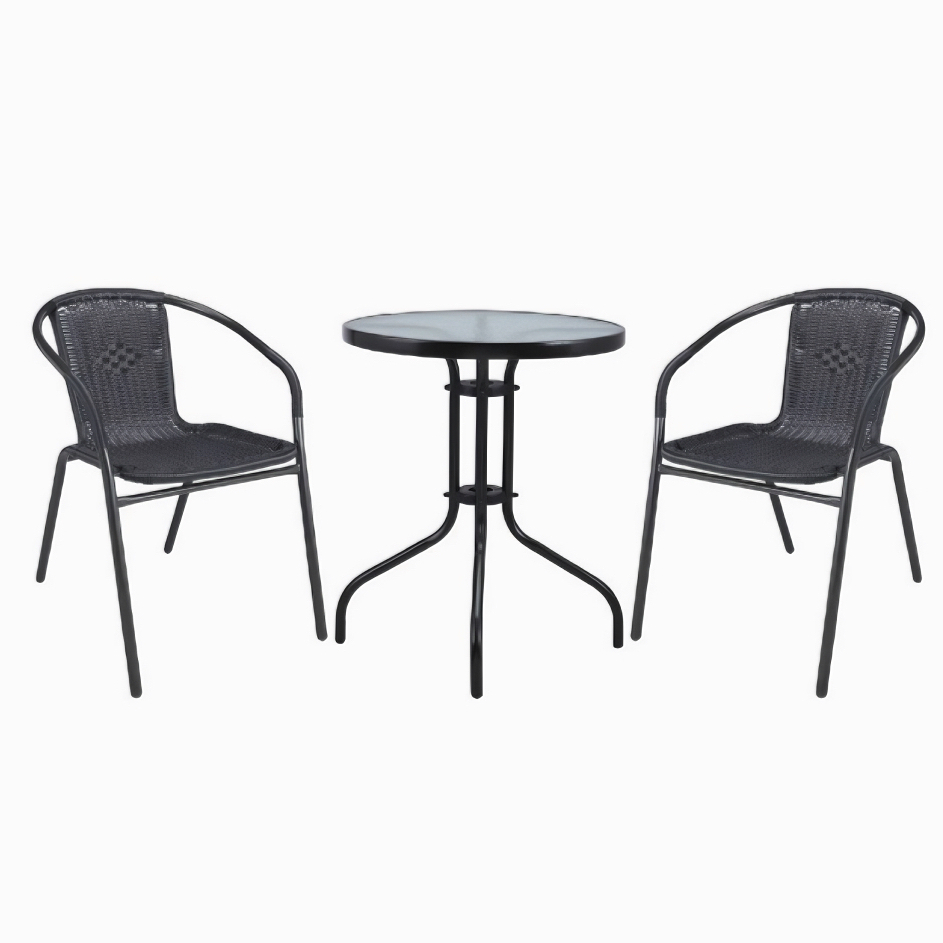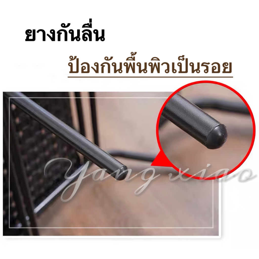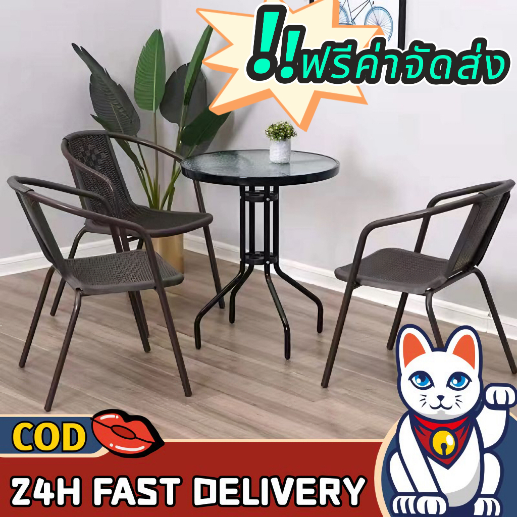 Lucky😸ชุดโต๊ะเก้าอี้หวายเทียมท็อปกระจก ไว้กลางแจ้งทนแดดฝน ดูแลรักษาง่าย เคลื่อนย้ายสะดวก