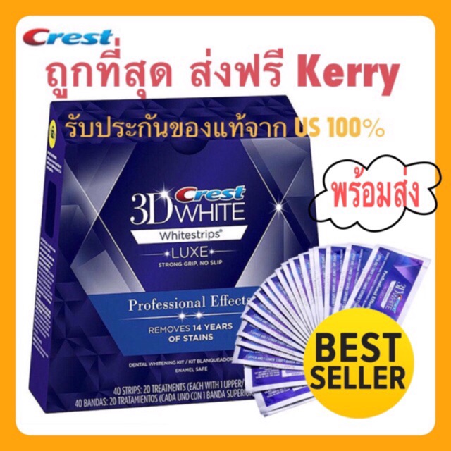 🔥แถมฟรี🔥 แผ่นฟอกฟันขาว Crest 3D White Luxe Professional Effects แผ่นฟอกฟัน (1ซอง)