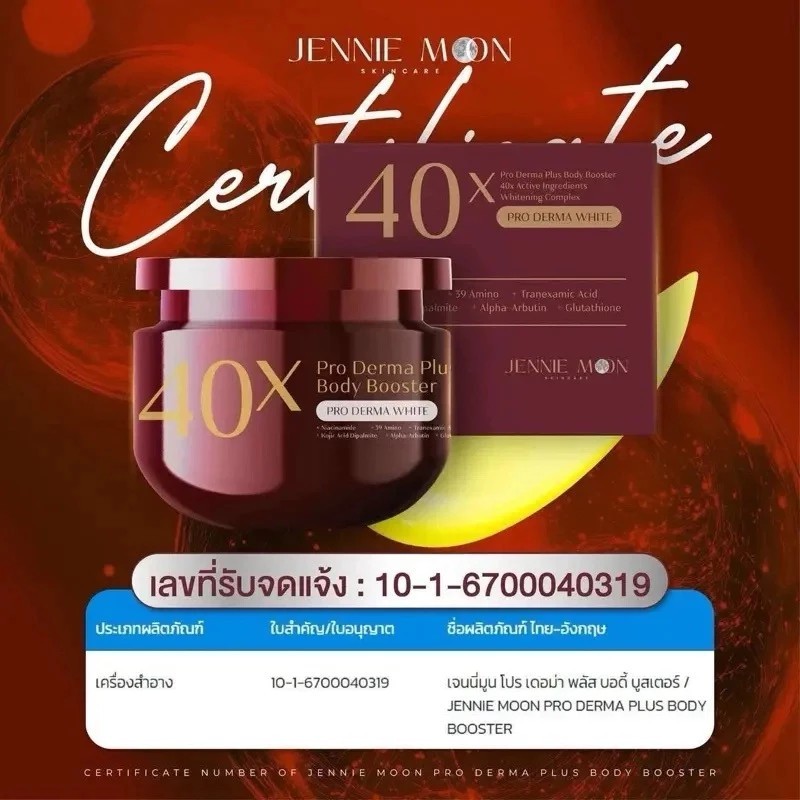 (ของแท้+พร้อมส่ง) ครีม40x เจนนี่ มูน JENNIE MOON PRO DERMA PLUS BODY BOOSTER 1 กระปุก 250 ml. ครีม 40X