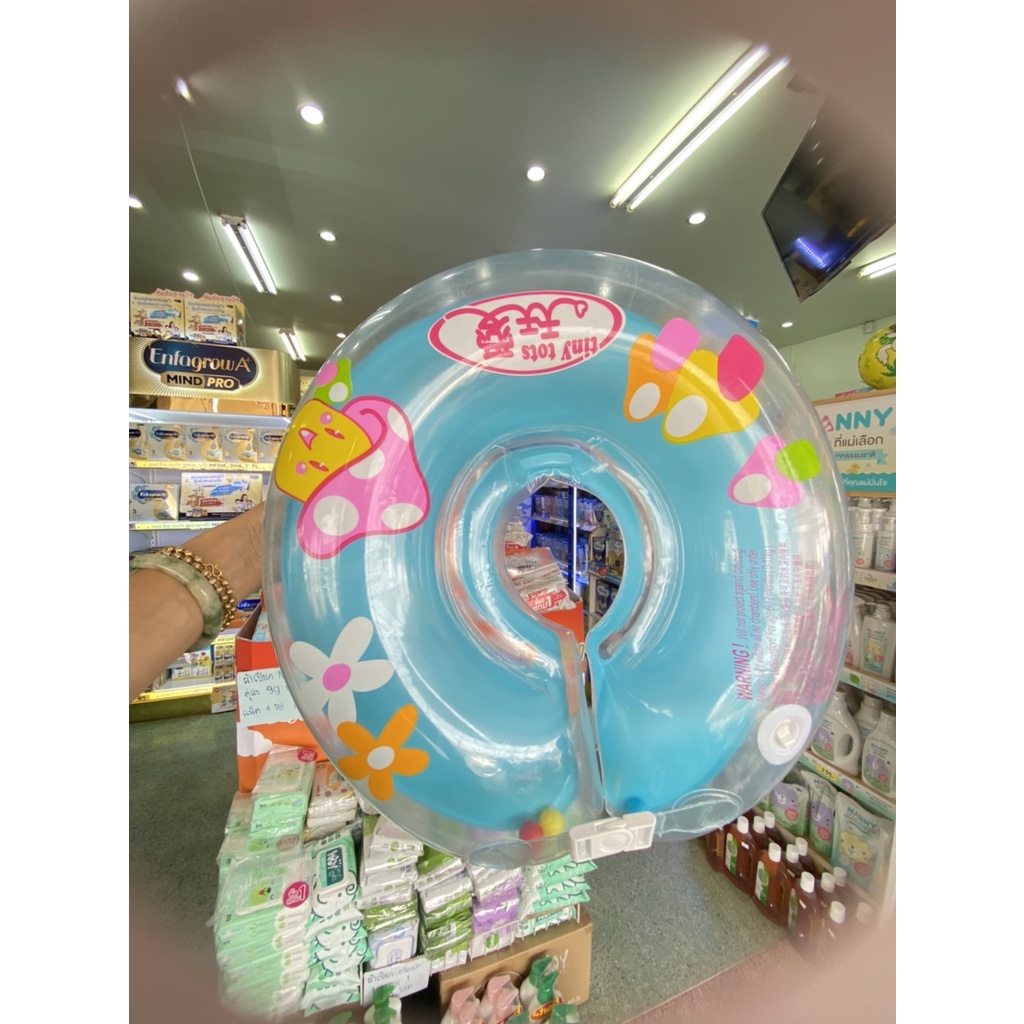 Ruklook Baby Swim Ring ห่วงยางสวมคอ 40cm สีฟ้า ลายเห็ด+ดอกไม้