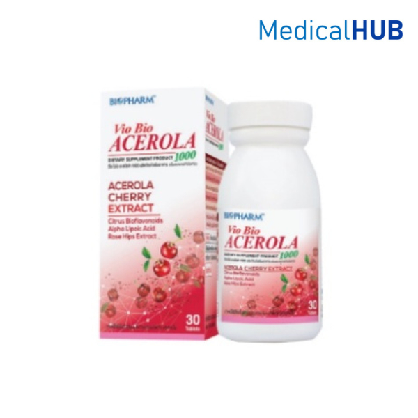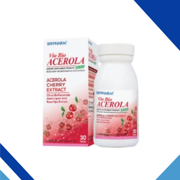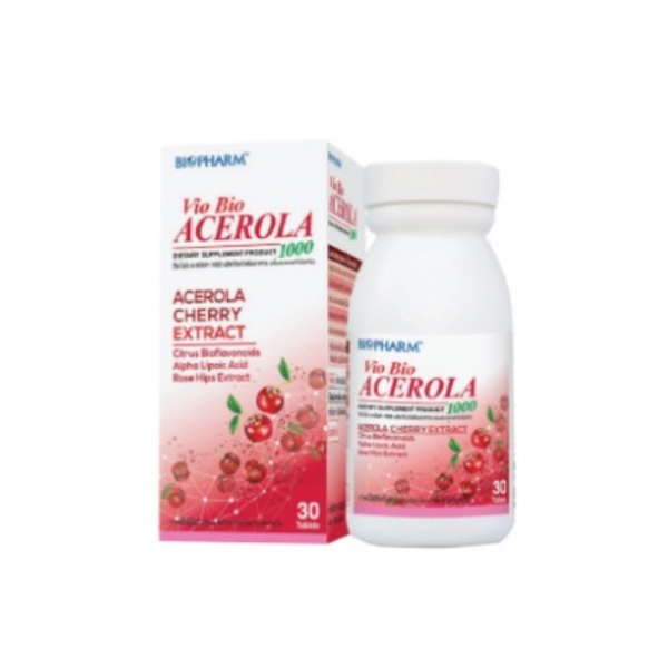Biopharm Vio Bio Acerola 1000 mg ไบโอฟาร์ม วีโอ ไบโอ อะเซโรล่า เสริมภูมิต้านทาน ขนาด 30 เม็ด 17320
