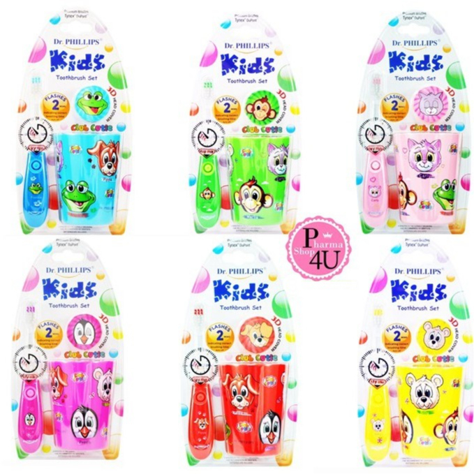 Dr. Phillips Flashing Timer Kids แปรงสีฟัน ไฟกระพริบ+แก้วน้ำ แปรงสีฟันเด็ก [คละแบบ สี] #7196