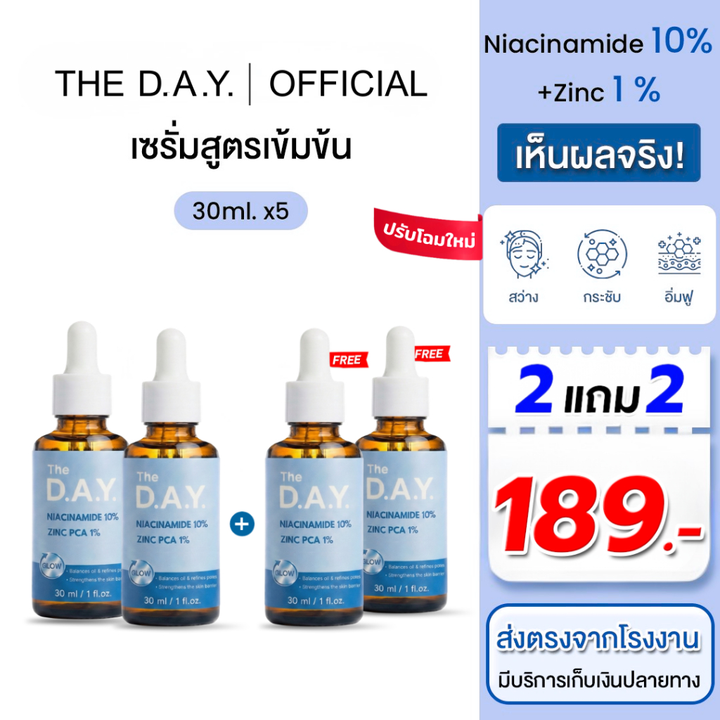 เดอะเดย์ เซรั่ม ไนอะซินาไมด์ 10% 2 แถม 2 ขวด - THE D.A.Y. Niacinamide serum ส่งตรงจากโรงงาน