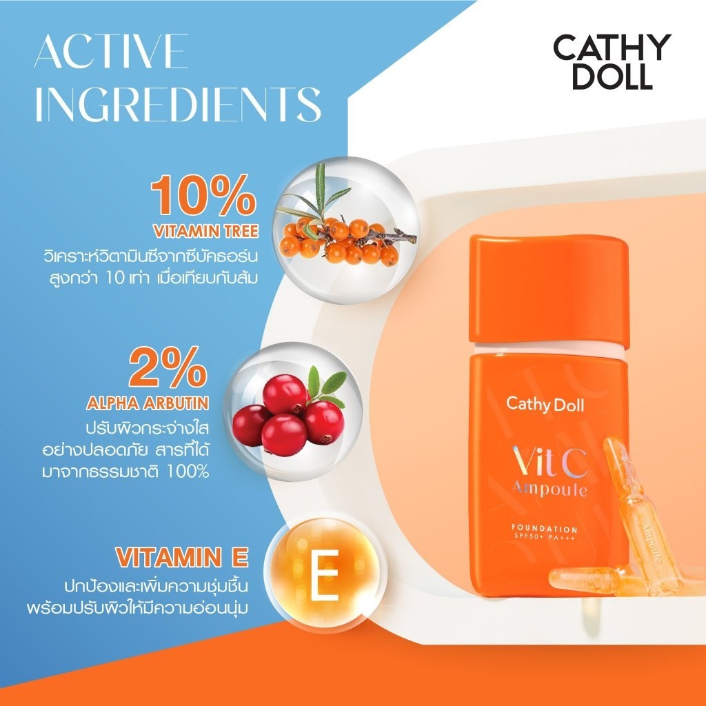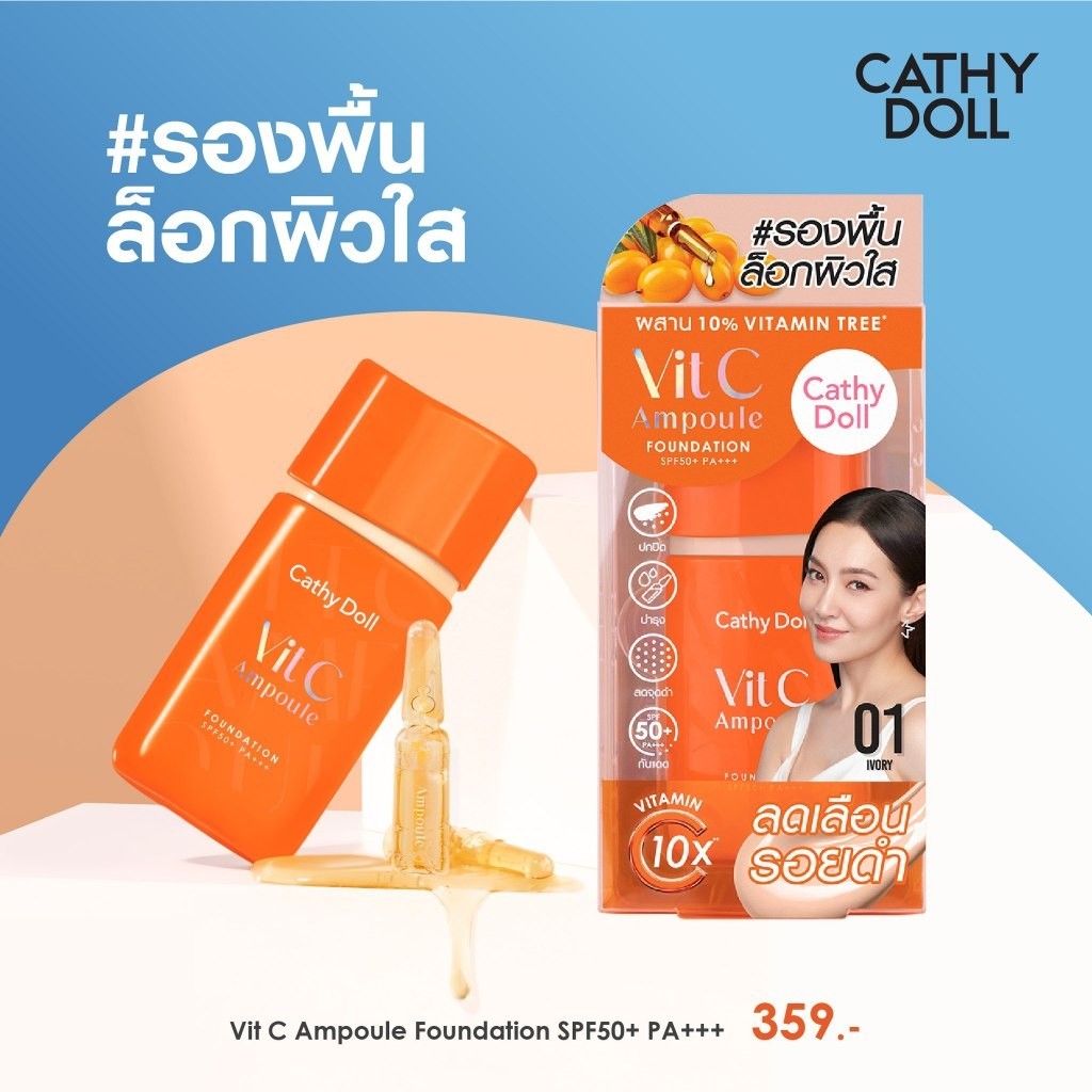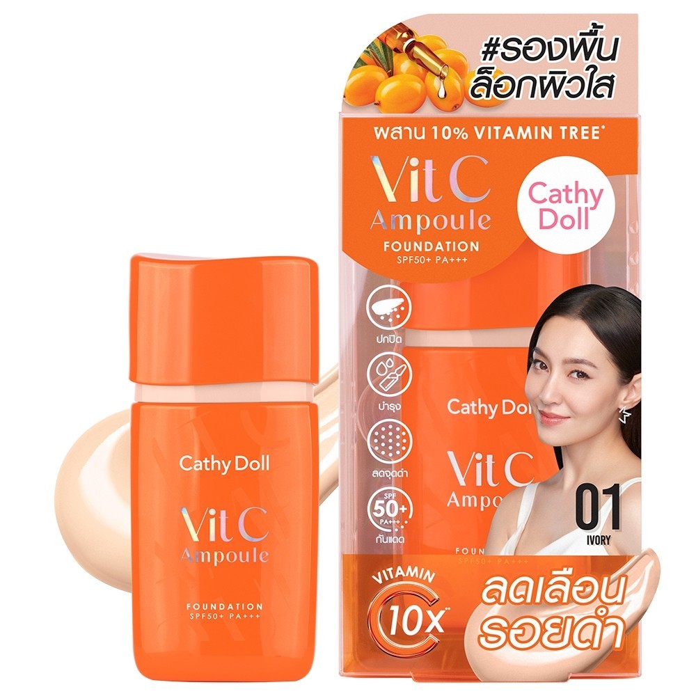 เคที่ดอลล์ รองพื้นล็อกผิวใส วิตซี แอมพูล ฟาวเดชั่น 30g Cathy Doll Vit C Ampoule Foundation SPF50+ PA+++