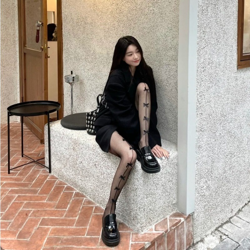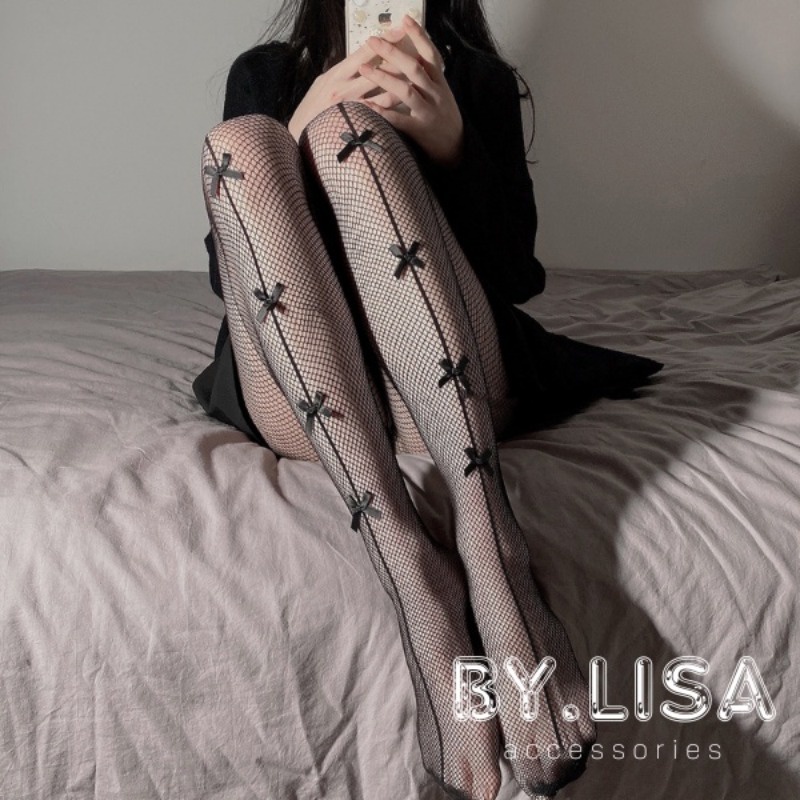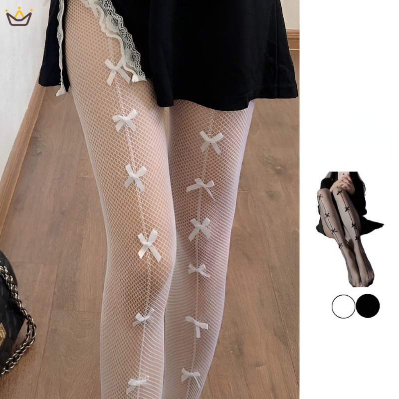ถุงน่องเซ็กซี่ ผ้าตาข่าย ประดับโบว์ สไตล์ญี่ปุ่น แฟชั่นโลลิต้า สําหรับผู้หญิง
