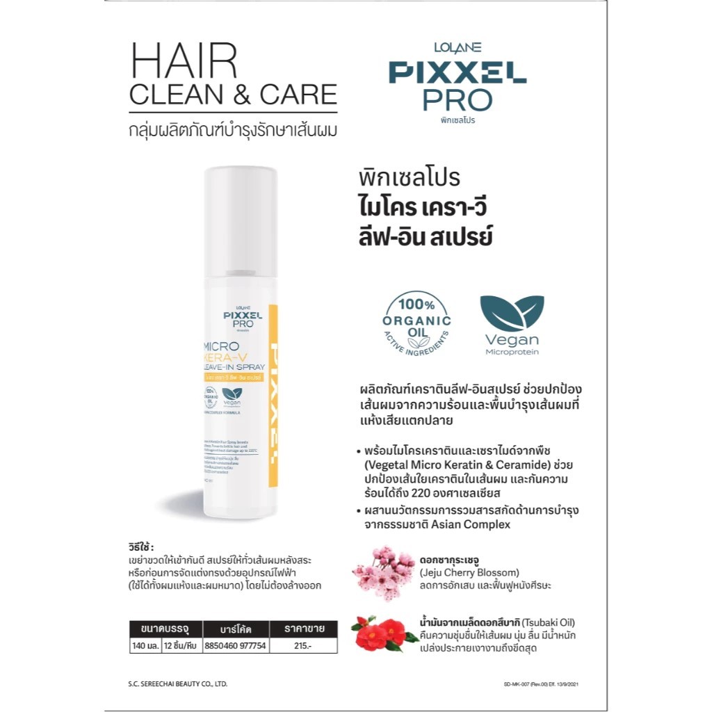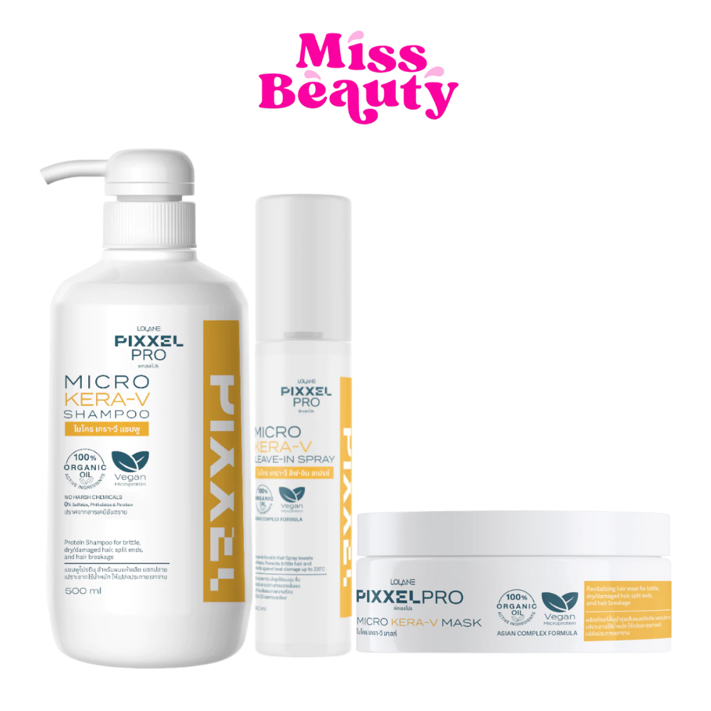 LOLANE Pixxel Pro Micro Kera-V โลแลน พิกเซลโปร ไมโคร เครา-วี แชมพู / ทรีทเมนท์มาส์ก / สเปรย์ ฟื้นบำรุงเส้นผมแห้งเสีย