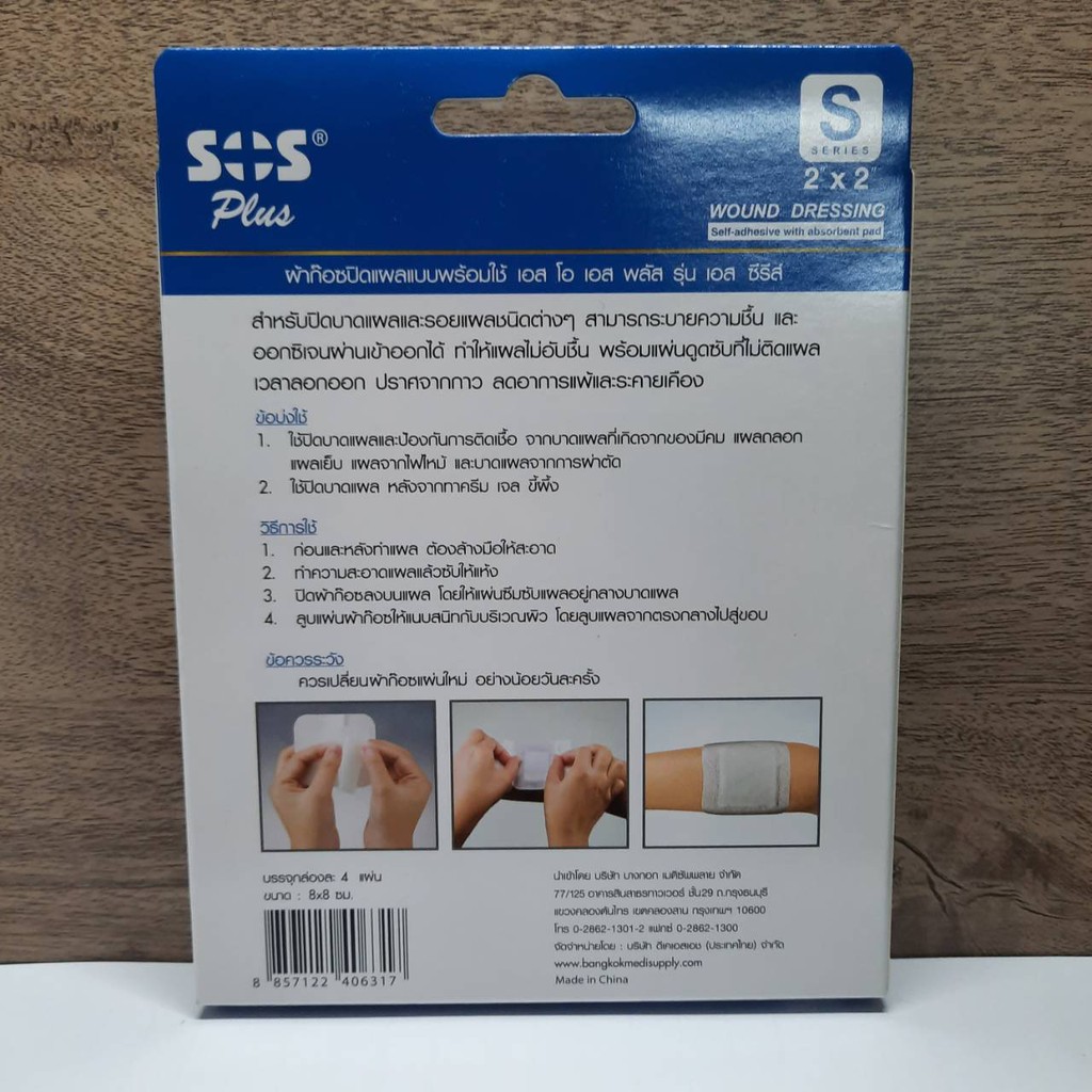 3808 SOS plus S2x2 ขนาด8x8ซม.ปิดแผลพร้อมใช้ เอสโอเอส สำหรับแผลไม่เกิน4ซม.