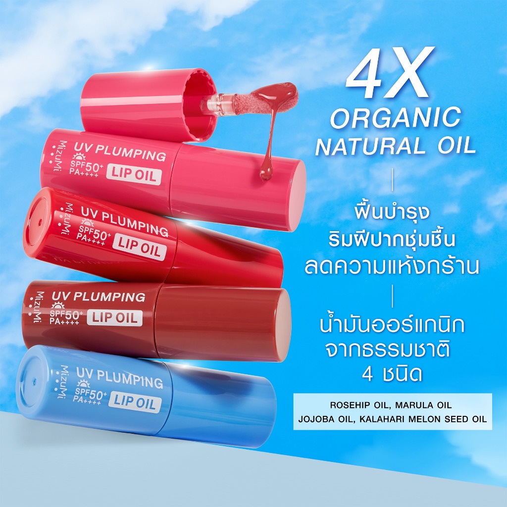 MizuMi UV Plumping Lip Oil 4g มิซูมิ ลิปออยล์กันแดด SPF50+ PA++++ บำรุงริมฝีปากให้ฉ่ำวาว 4g มีให้เลือก 4สี