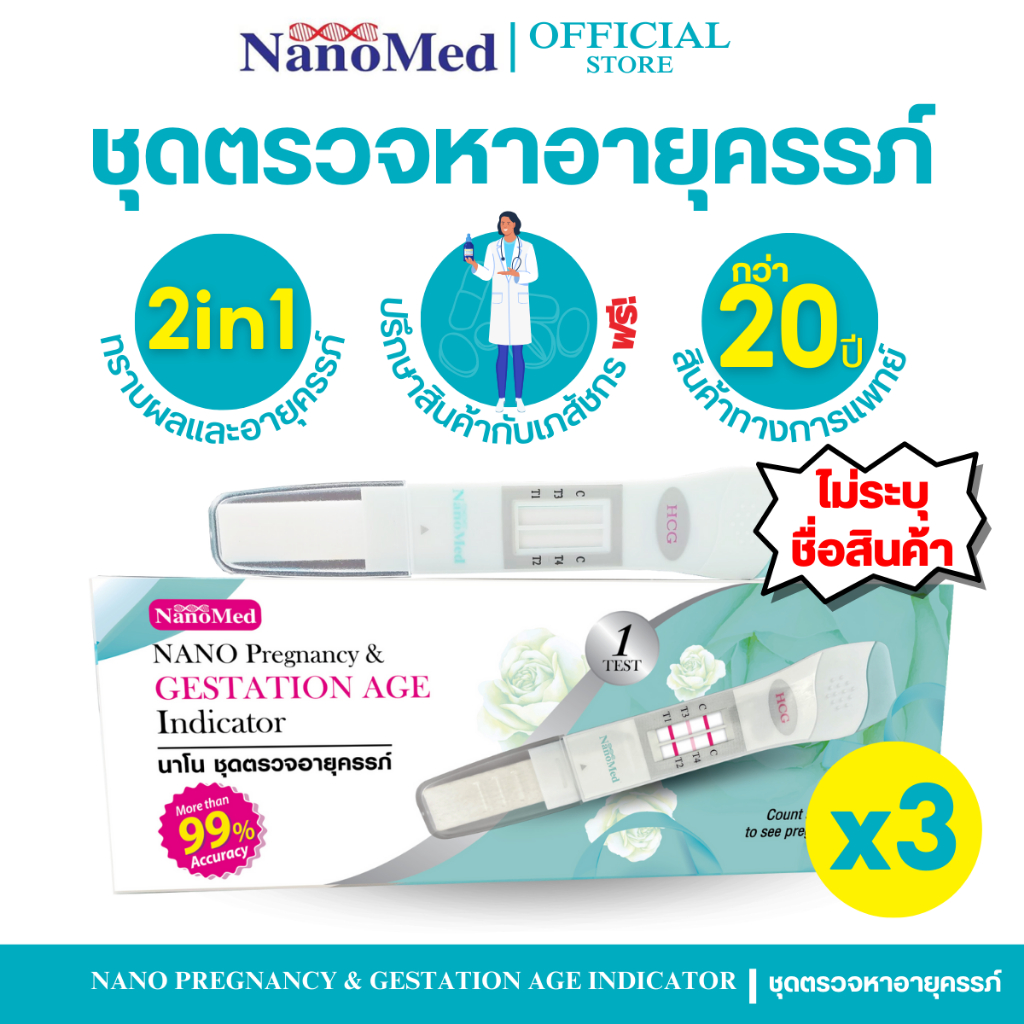 (3 ชิ้น) NanoMed ชุดตรวจหาอายุครรภ์ ด้วยตนเองแบบปัสสาวะผ่าน ทราบผลการตั้งครรภ์+จำนวนสัปดาห์ของครรภ์