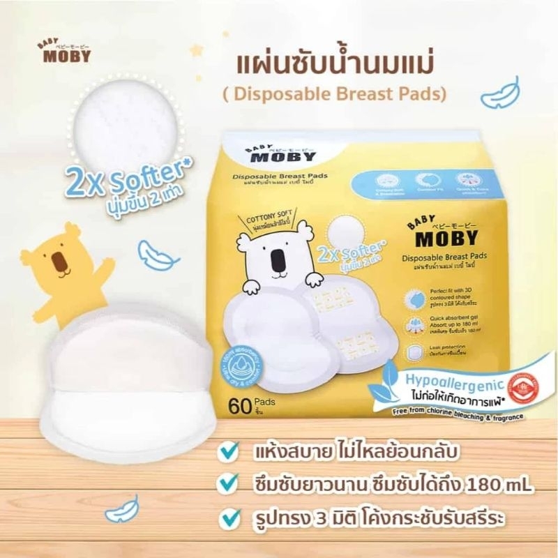Baby Moby แผ่นซับน้ำนม รุ่น 3D Super Absorbent Gel ร่องซึมซับ4จุด