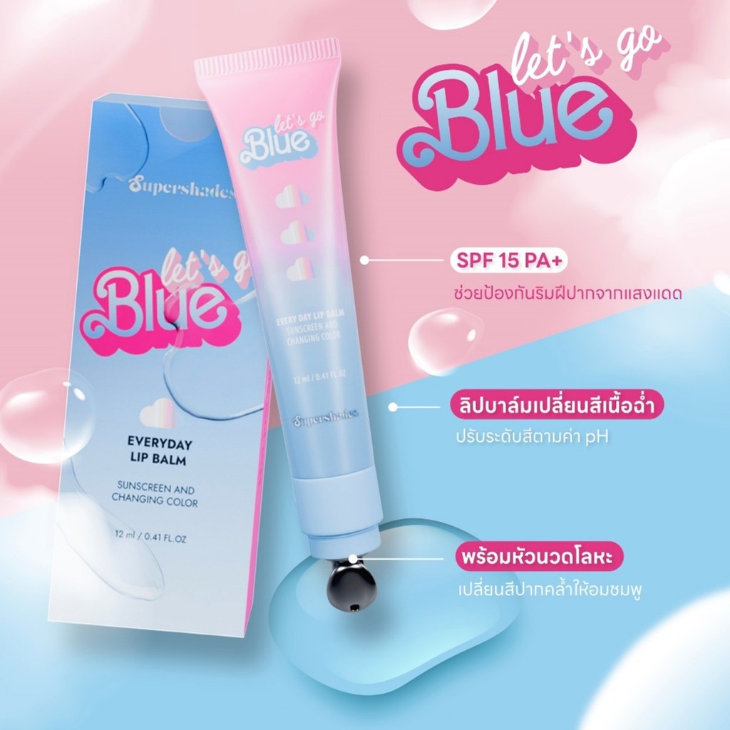 [พร้อมส่ง/ขายส่ง/ส่งไว]SuperShades Let’S Go Blue,Black Everyday Lip Balm 12ml ลิปบาล์มเปลี่ยนสี ปรับระดับสีตามค่า pH