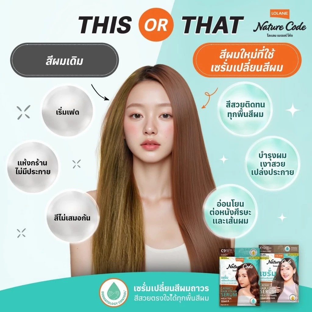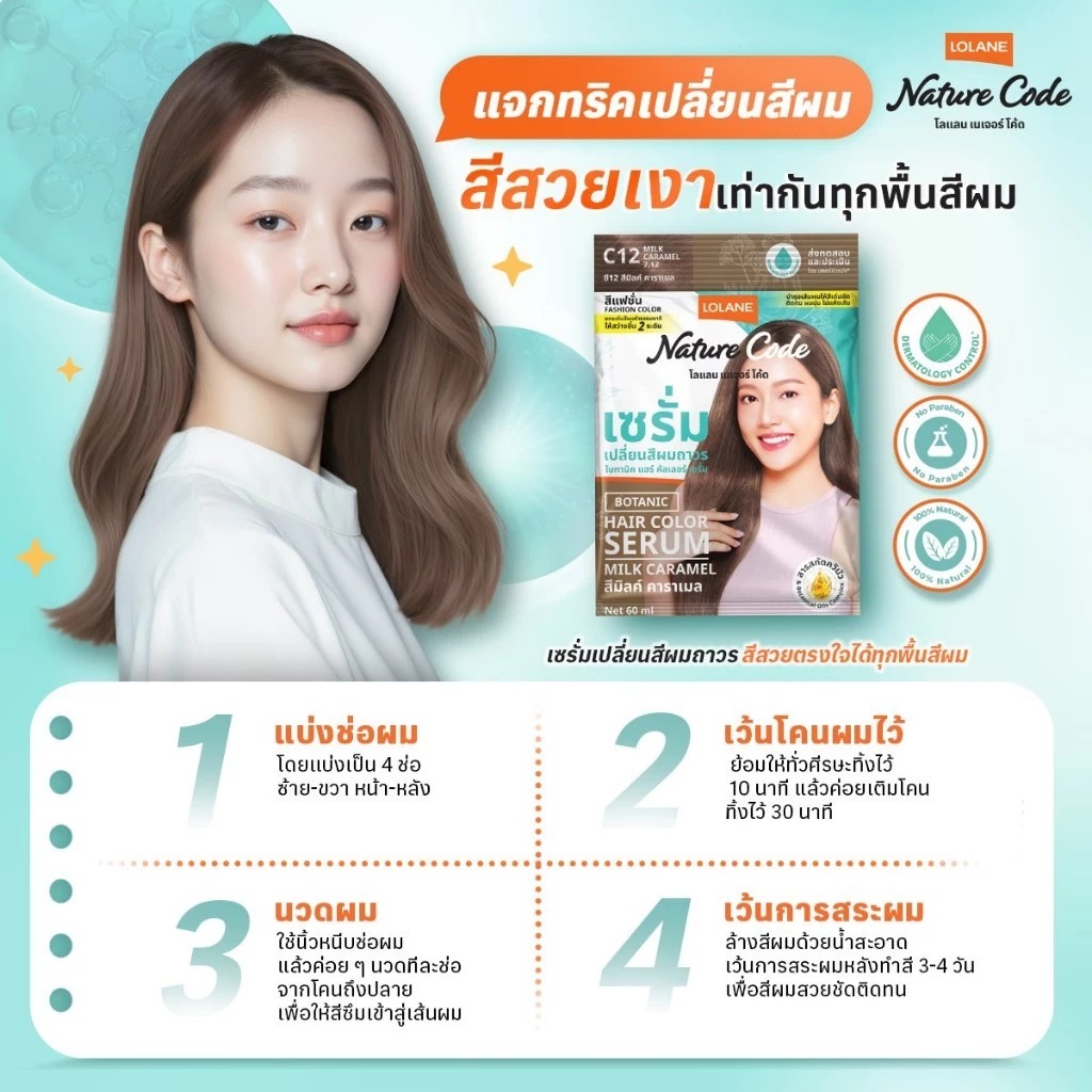 ถูก/แท้/มีไลฟ์ (ซอง) เซรั่มเปลี่ยนสีผม Lolane Nature Code Botanic Hair Color Serum โลแลน ย้อมผม เปลี่ยนสีผม สีติดทน