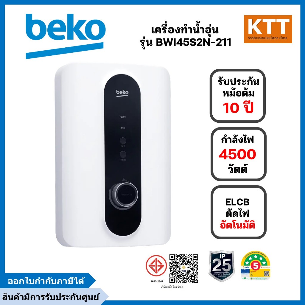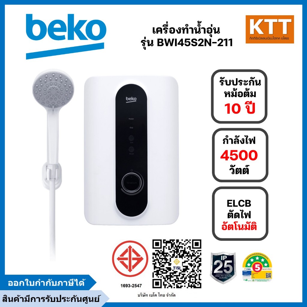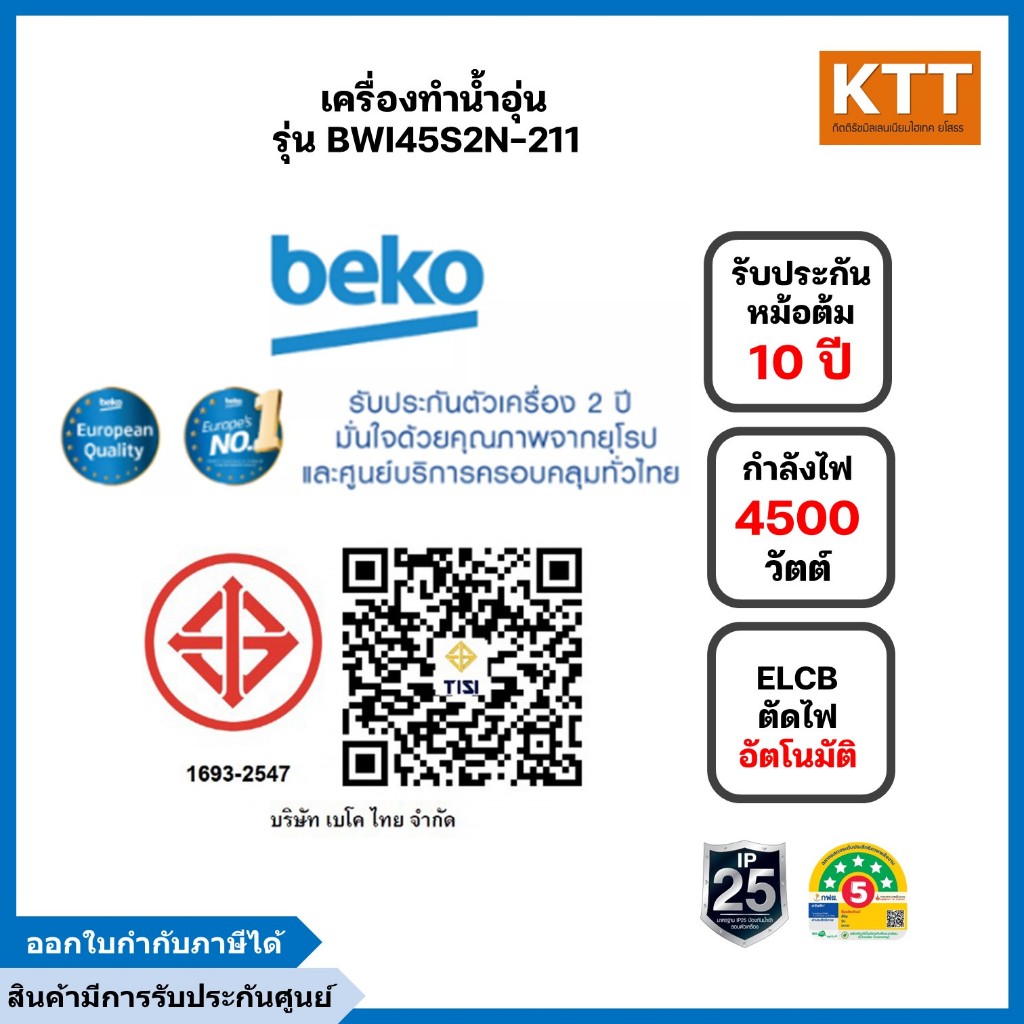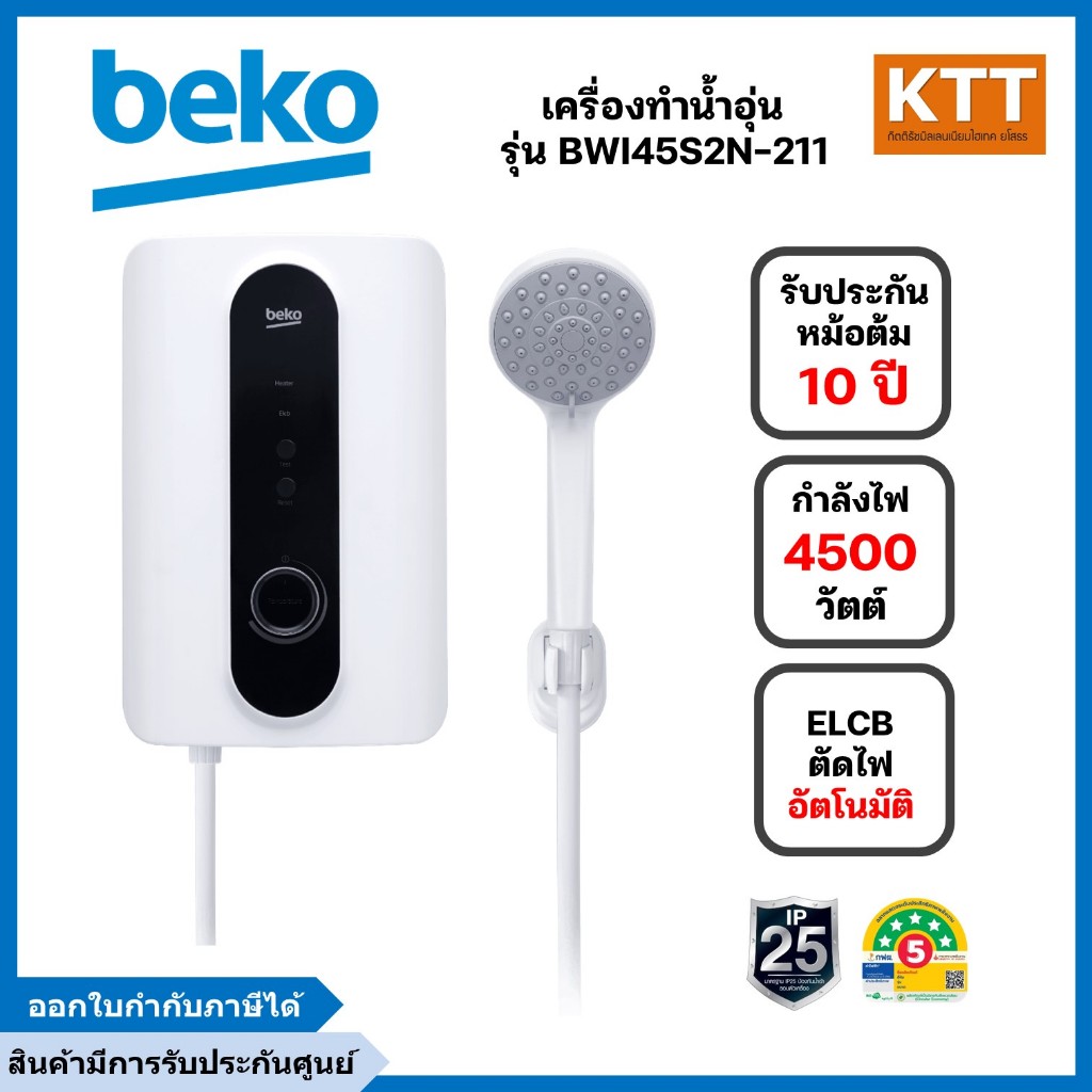 BEKO เครื่องทำน้ำอุ่น ขนาด 4500 วัตต์ รุ่น BWI45S2N-211 สีขาว