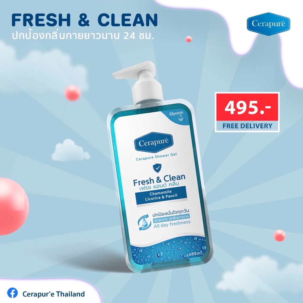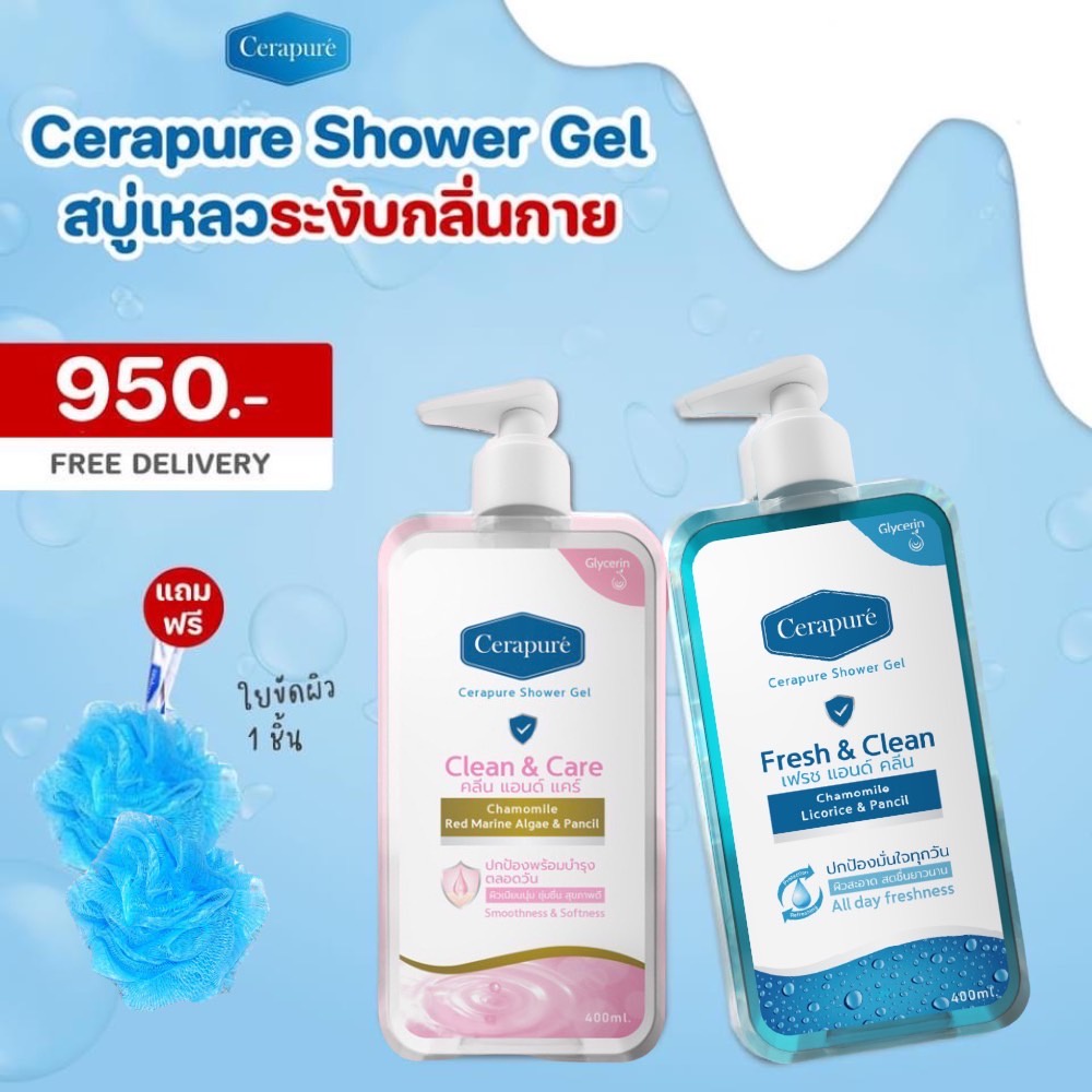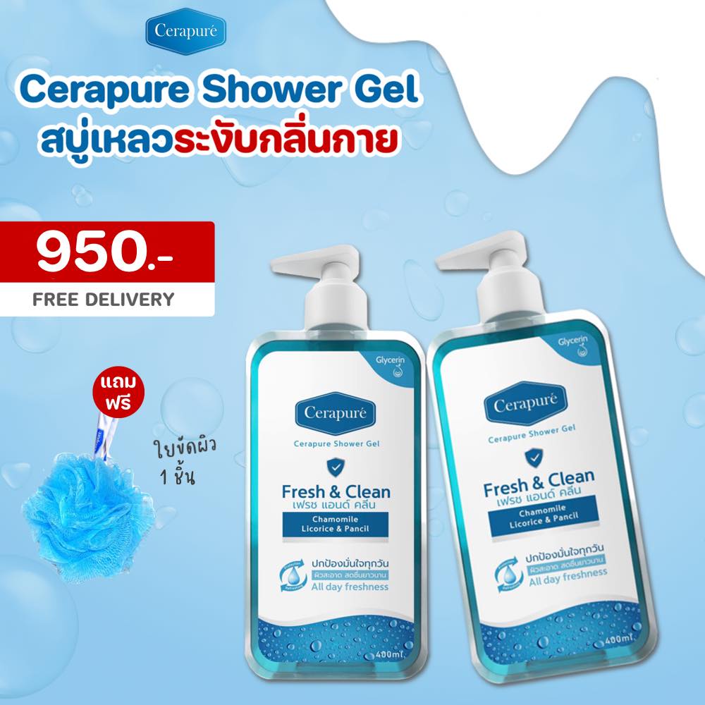 พร้อมส่ง CERAPURE SHOWER GEL เซราพิวเร่ ชาวเวอร์เจล สบู่เหลว ครีมอาบน้ำ 400 ml