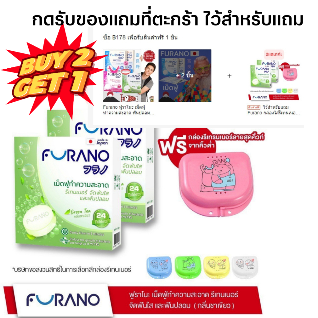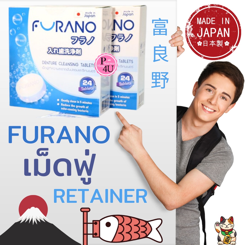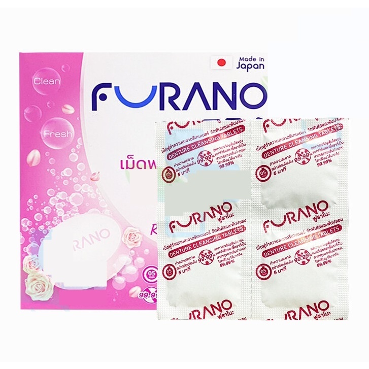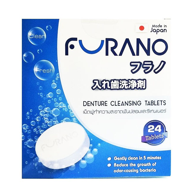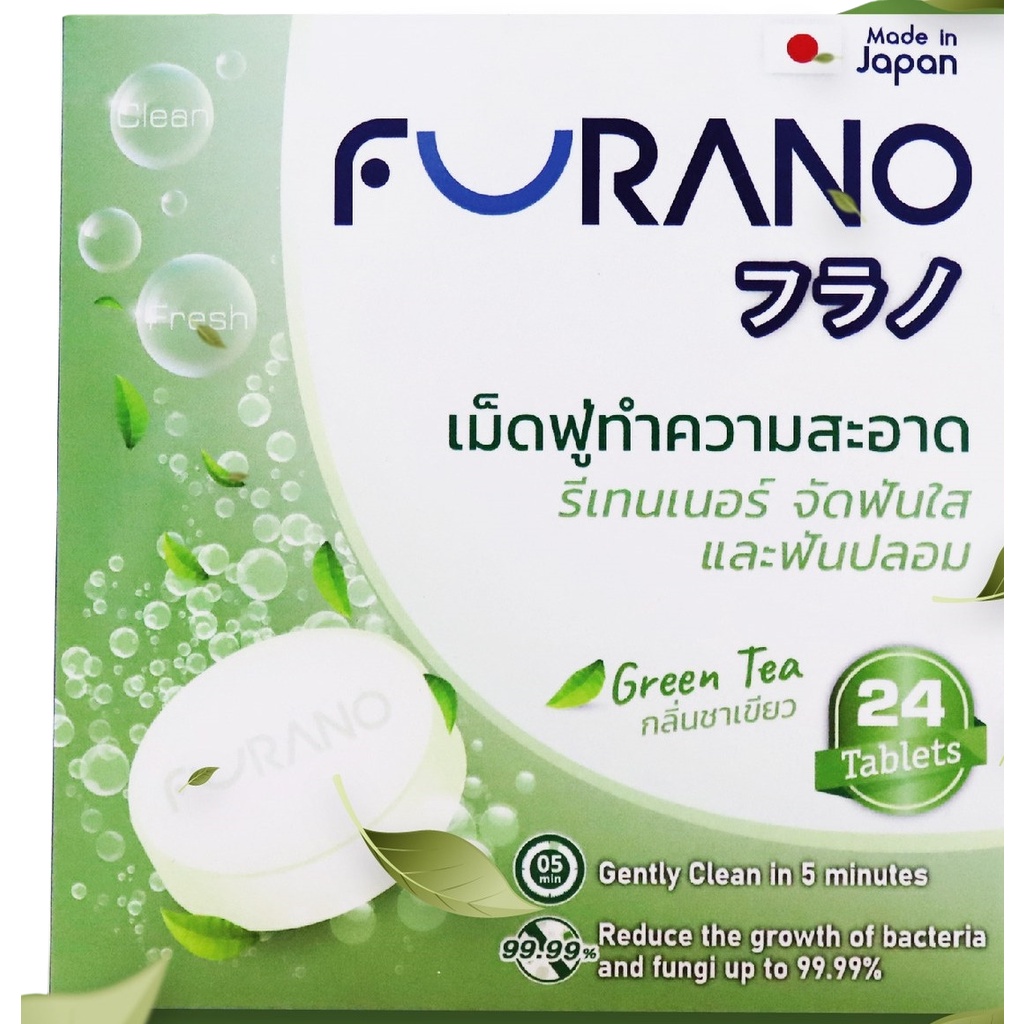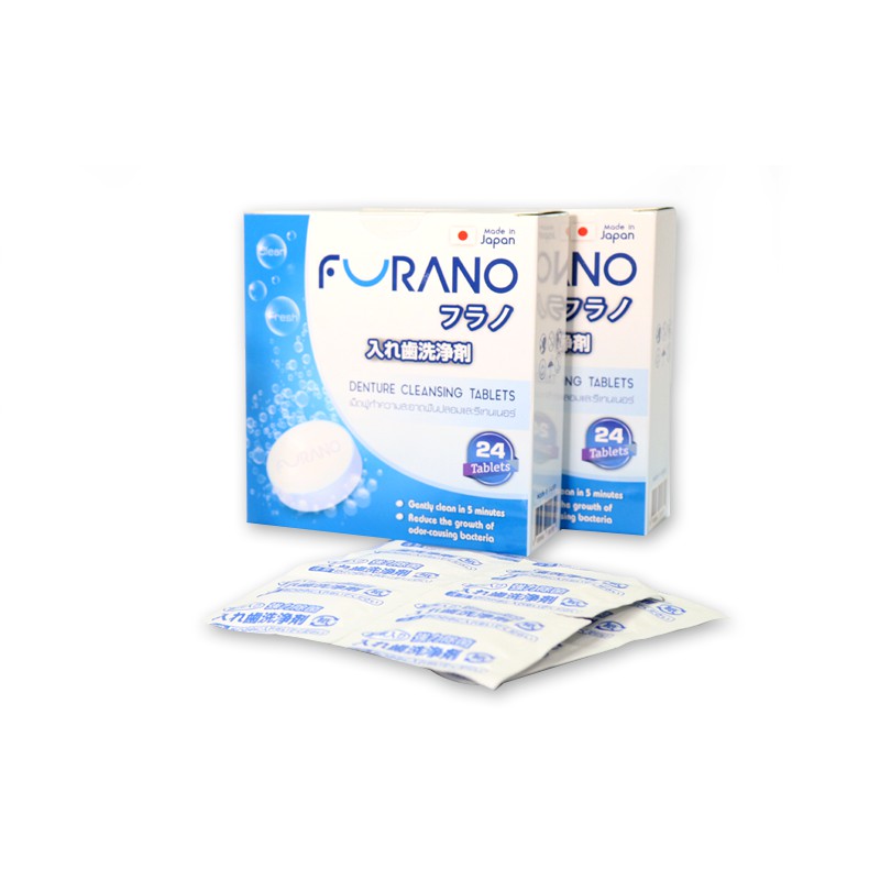 Furano ฟูราโนะ เม็ดฟู่ ทำความสะอาด ฟันปลอม และรีเทนเนอร์ (กล่องละ 24 เม็ด) จากประเทศญี่ปุ่น