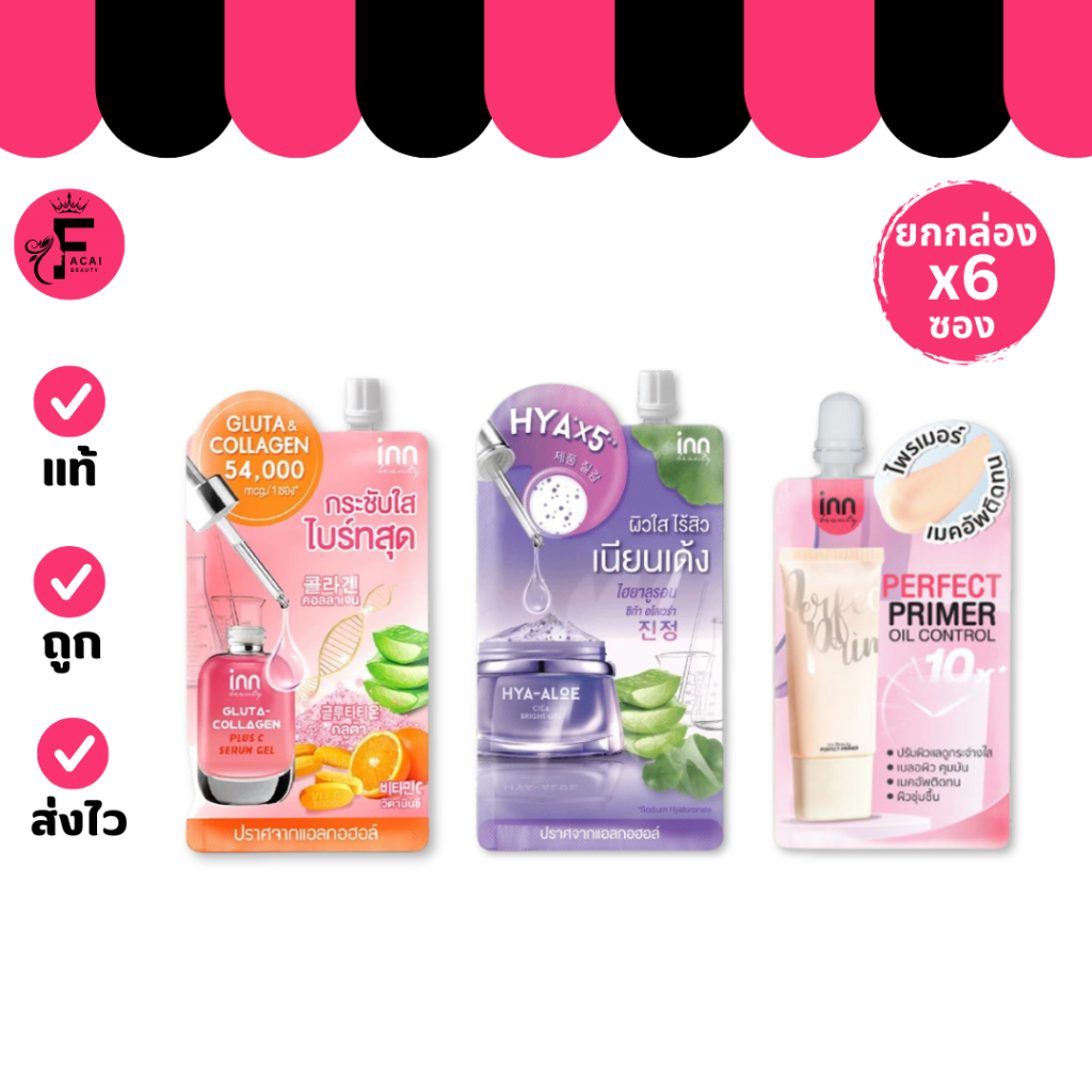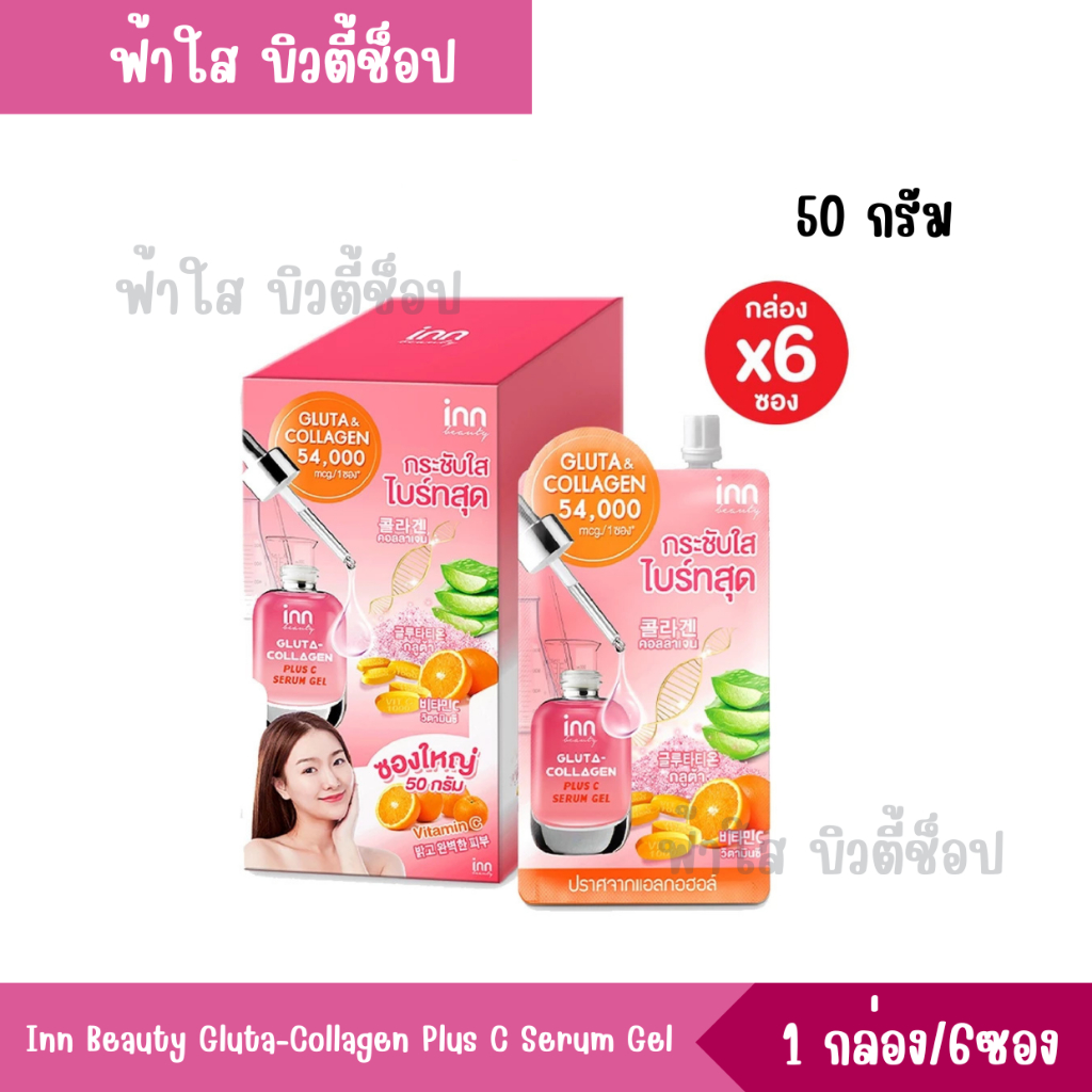 (6 ซอง) Inn Beauty กลูต้า-คอลลาเจน พลัส ซี เซรั่ม เจล / อินท์ ไฮยา - อโล/ไพรเมอร์ (ปริมาณ 7/50 กรัม)