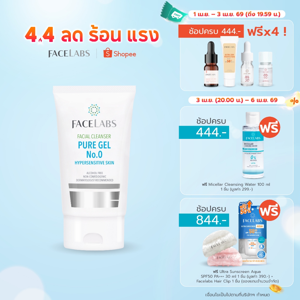 [ขายดีมาก] เจลล้างหน้า ผิวแพ้ง่าย FACELABS Cleanser Pure Gel No.0 120 ml. คลีนเซอร์ผิวแพ้ง่าย อ่อนโยน ไม่ระคายเคือง