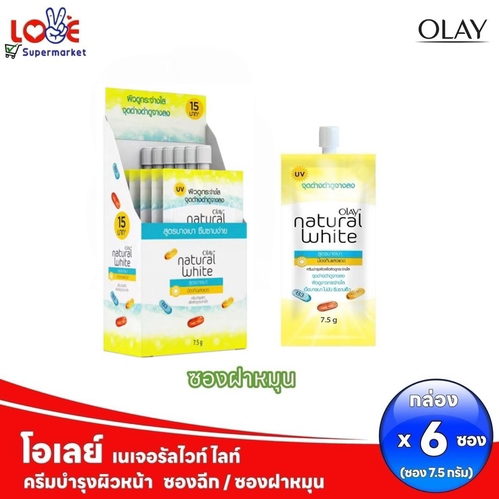 (กล่อง 6 ซอง) Olay โอเลย์ เนเจอรัลไวท์ ไลท์ ครีมบำรุงผิวหน้า แบบ ซองฉีก/ฝาหมุน 7.5 กรัม x 6 ซอง