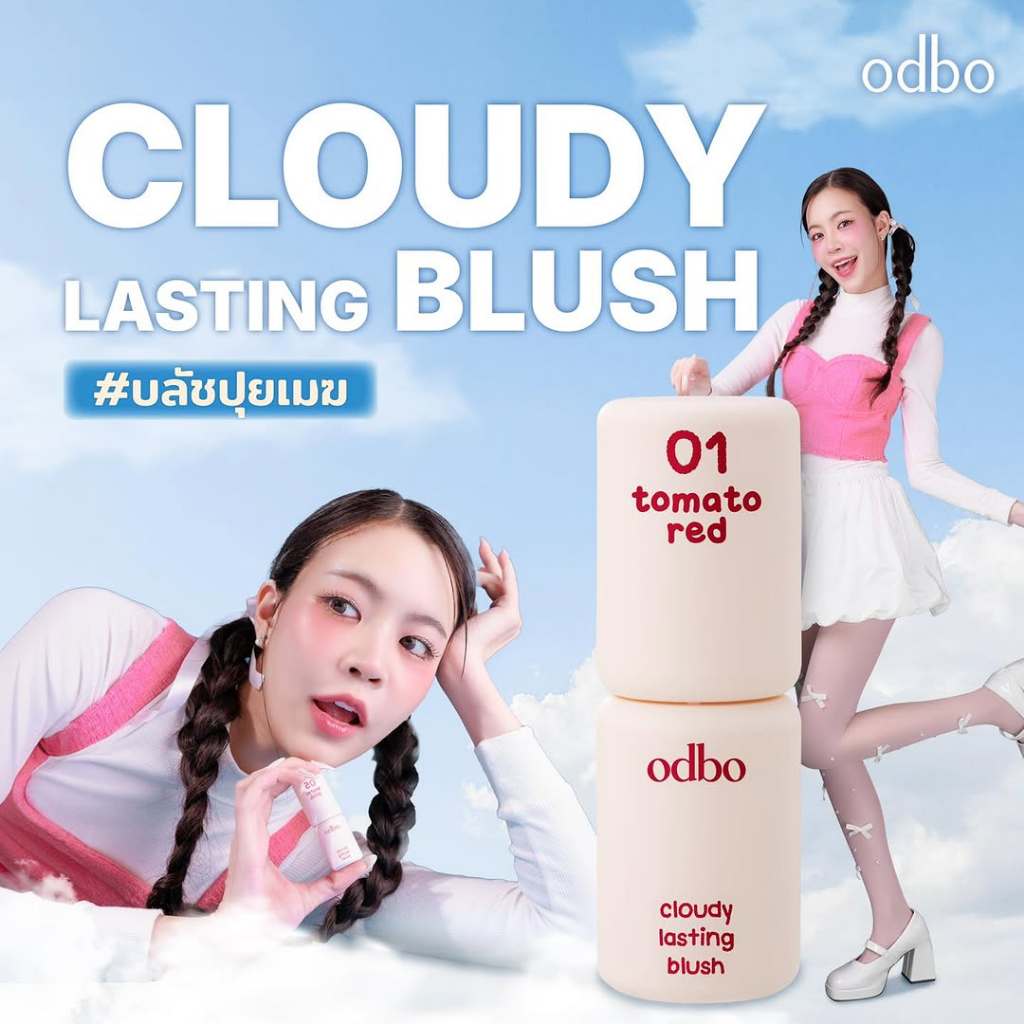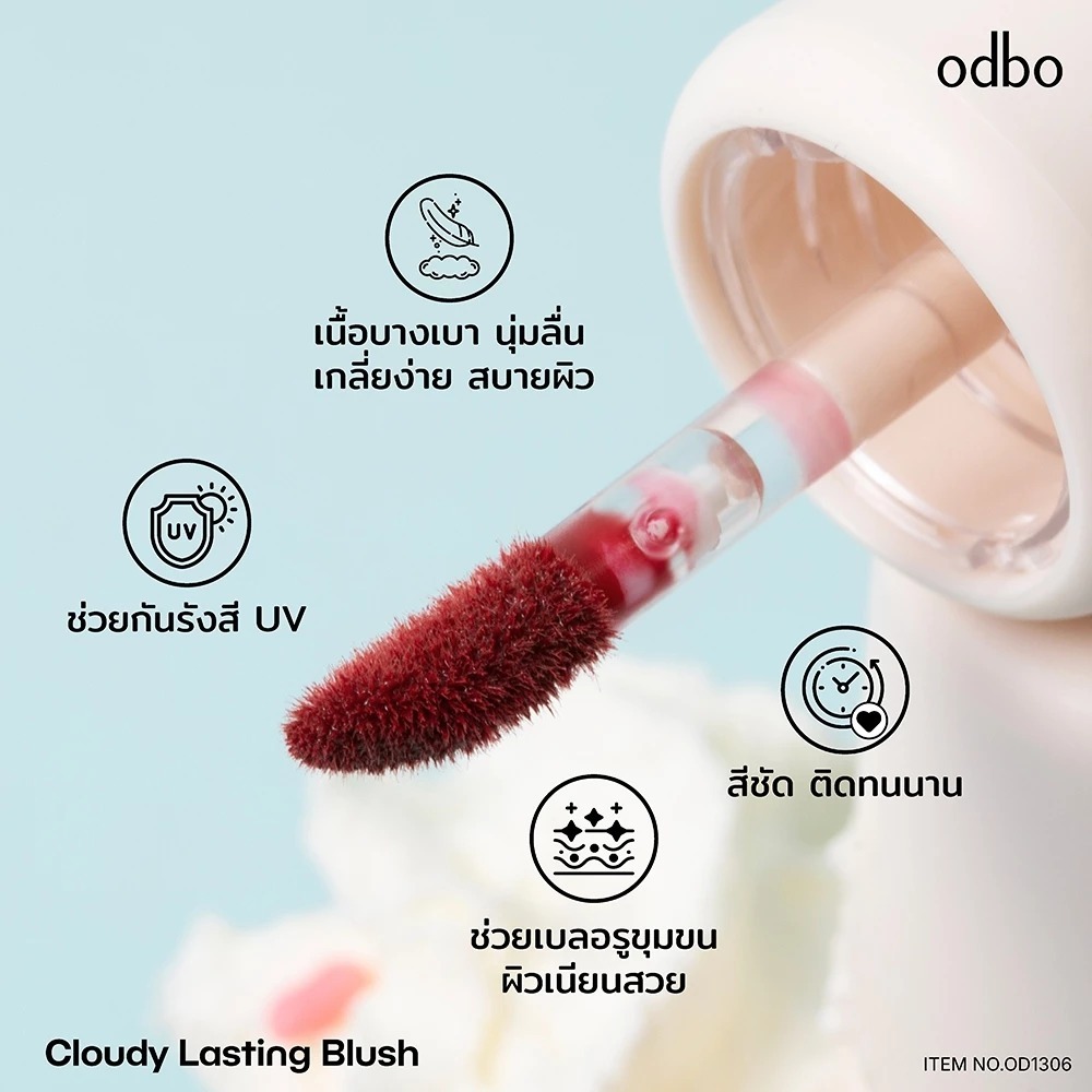 ถูก/แท้/มีไลฟ์ บลัชออน ODBO Cloudy Lasting Blush บลัชปุยเมฆ บลัชเนื้อลิควิด บางเบา เกลี่ยง่าย แก้มสวย ติดทน