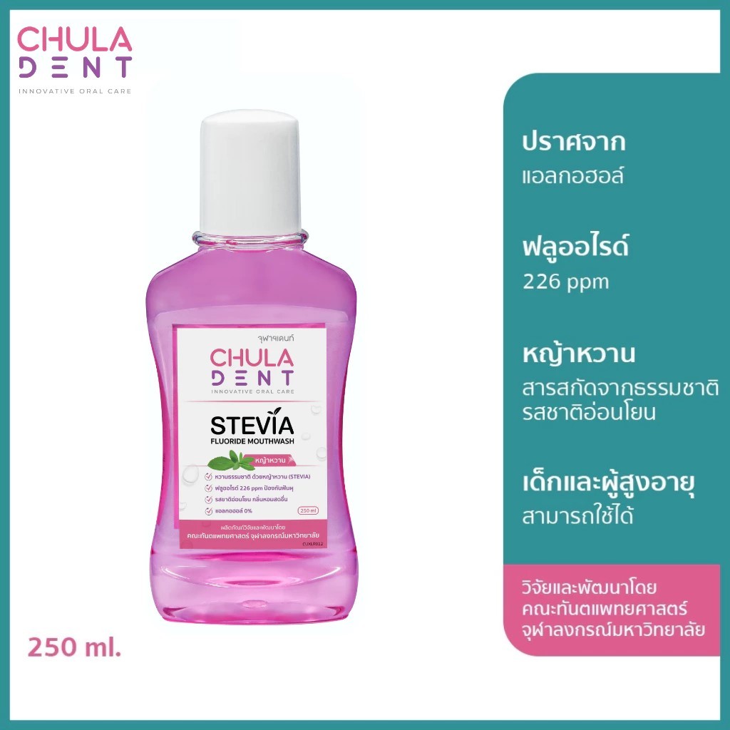 น้ำยาบ้วนปากคูฬเดนท์ สตีเวียฟลูออไรด์ (CUdent Stevia Fluoride Mouthwash) 250 ml