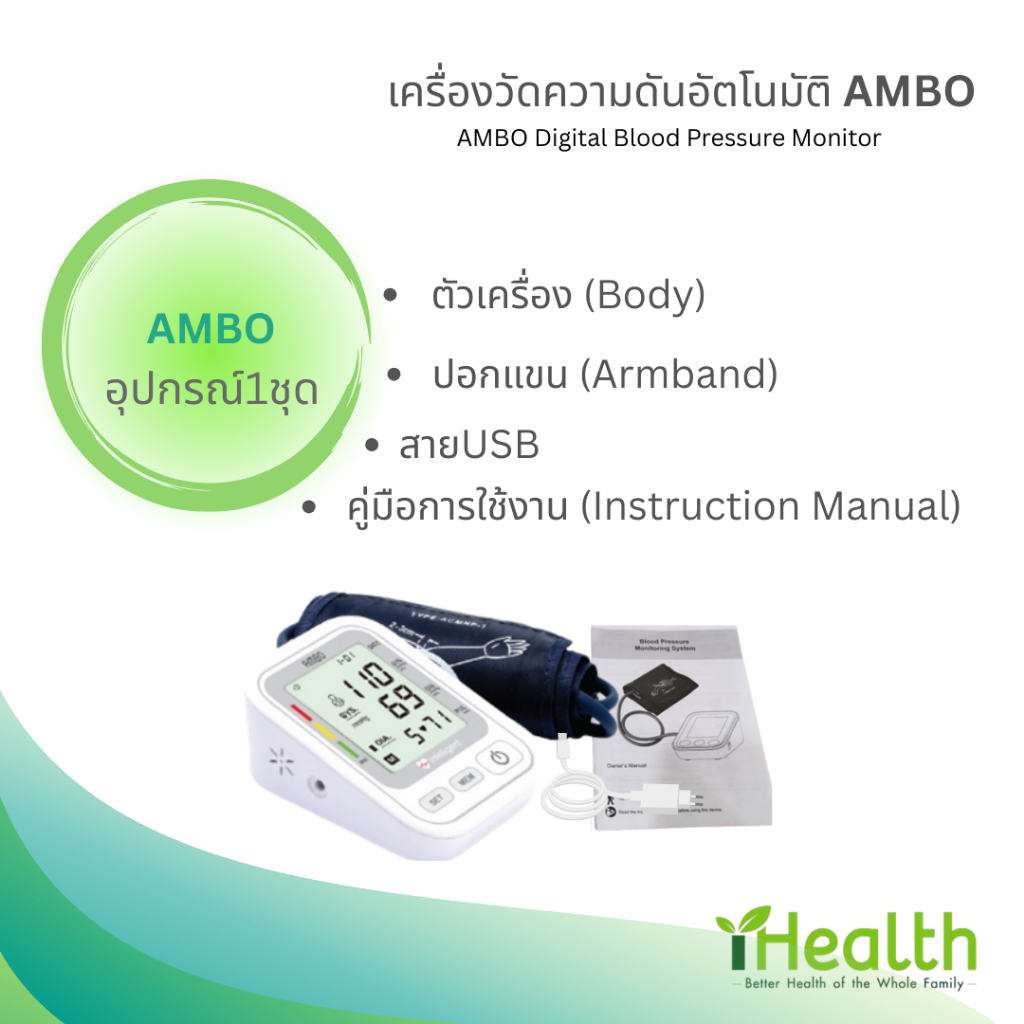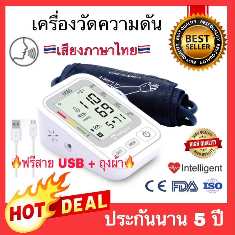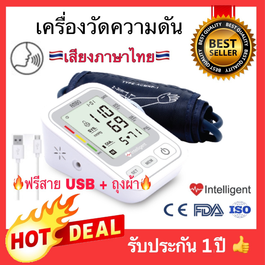 🔥เสียงไทย🔥 เครื่องวัดความดัน Ambo รุ่นใหม่จอใหญ่‼️ที่วัดความดัน อัตโนมัติ บริเวณต้นแขน (ฟรีสายUSB)