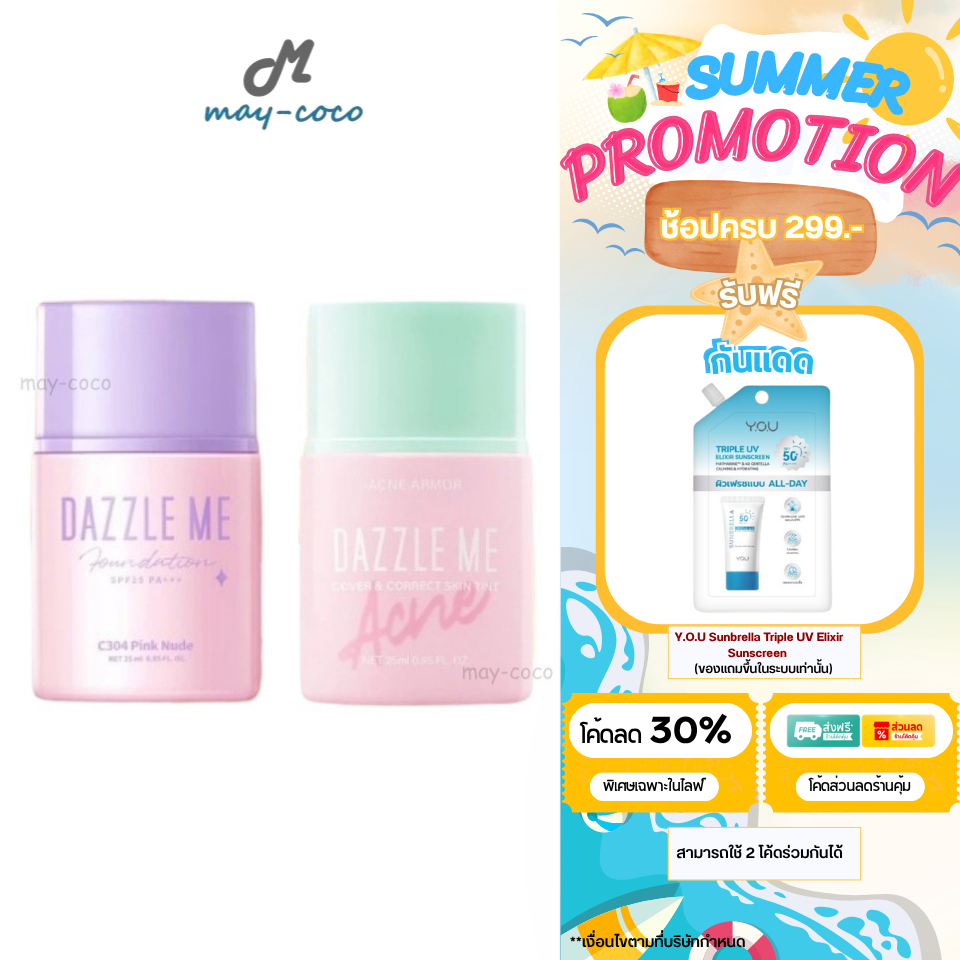 ถูก/แท้/มีไลฟ์ รองพื้น Dazzle Me Day by Day Foundation Acne Armor Cover&Correct Skin Tint ปกปิด คุมมัน กันน้ำ หน้าเนียน