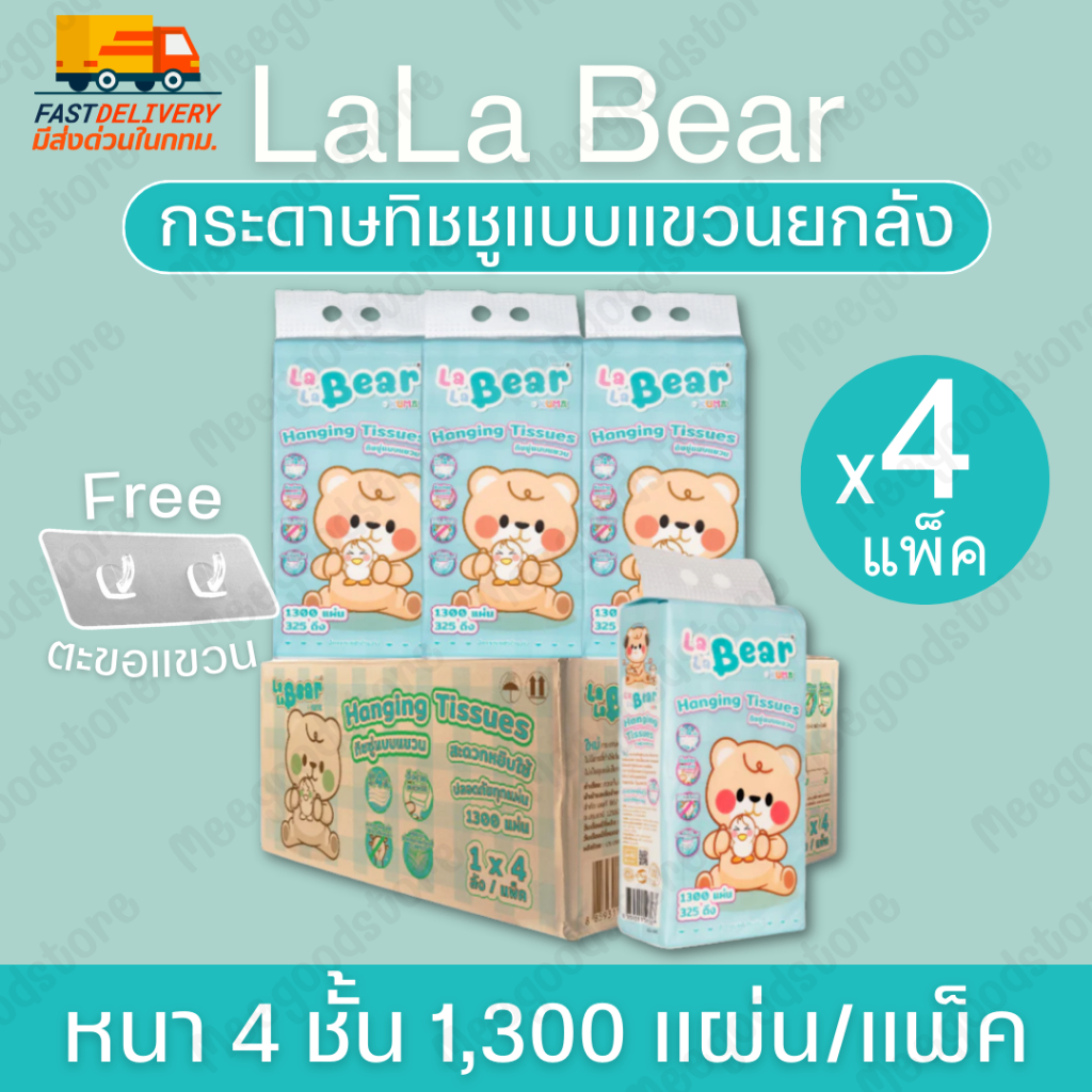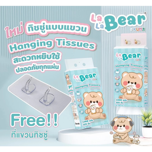 พร้อมส่ง🔥ยกลัง 4 แพ็ค กระดาษทิชชูแบบแขวน Lala Bear 1,300 แผ่น/แพ็ค สะอาดปลอดภัย ดึงง่ายใช้สะดวก คุ้มค่าคุ้มราคา