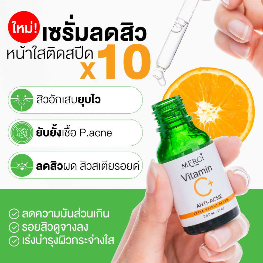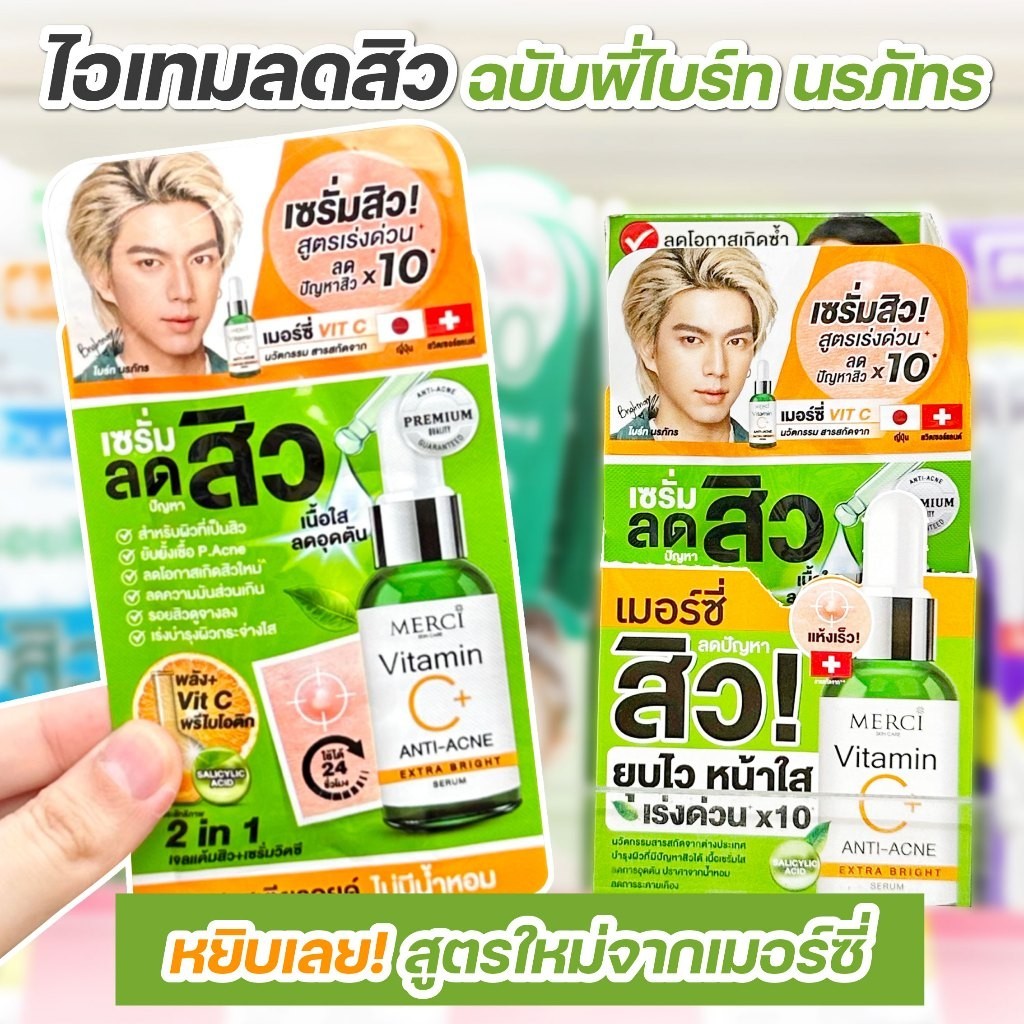 1 ซอง แบบซอง MERCI เซรั่มวิตซี เมอร์ซี่ สูตรลดปัญหาสิว 4 มล.