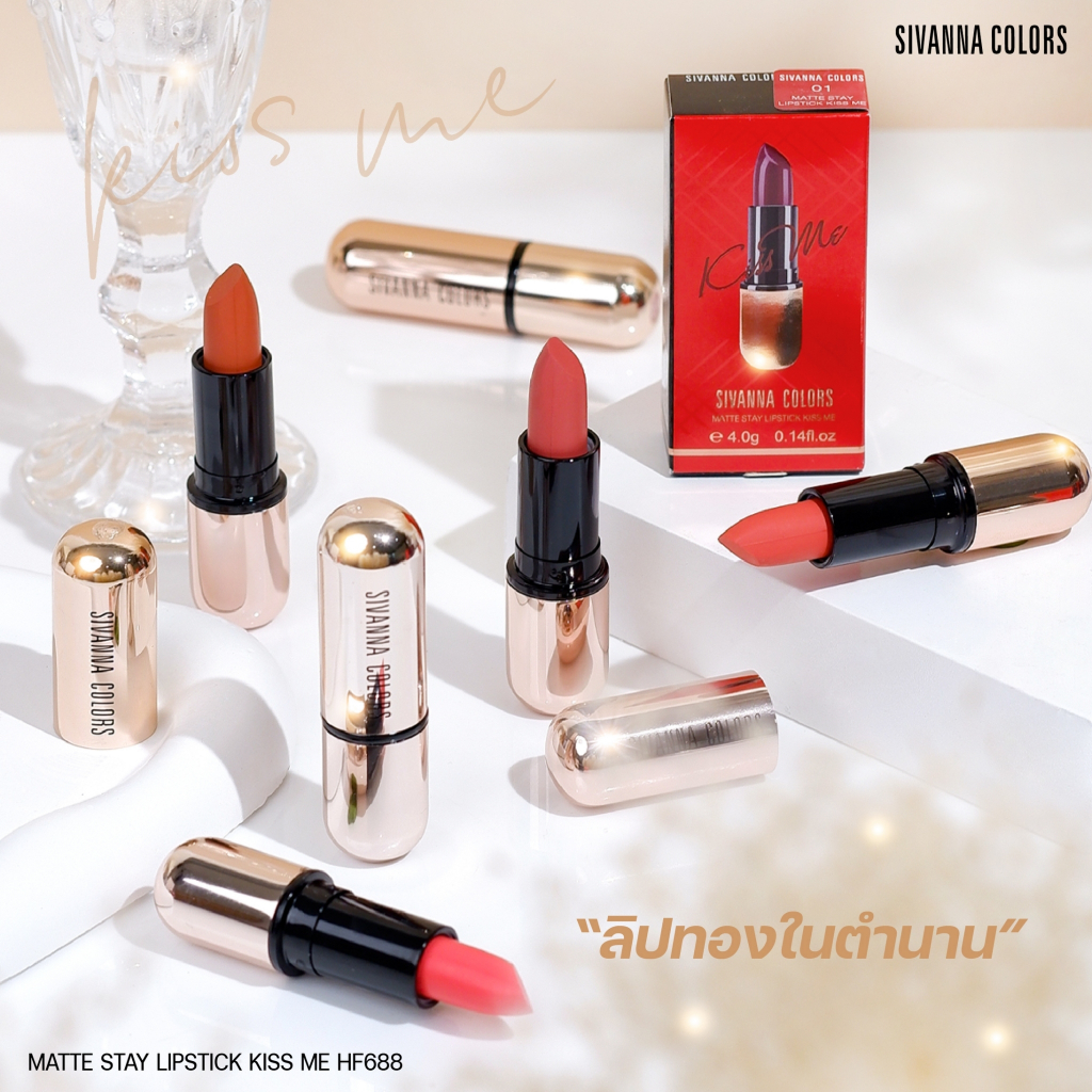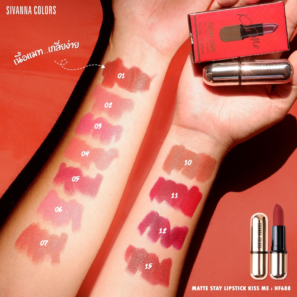 MATTE STAY LIPSTICK KISS ME : HF688 Sivanna ลิปสติก คิส มี เนื้อแมทท์ นุ่มลื่น เกลี่ยง่าย