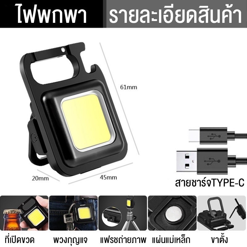 ไฟฉายพวงกุญแจ LED พกพา ไฟฉายแรงสูง ชาร์จได้ USB 7โหมด COB สว่างมาก พร้อมหัวไขควง 4หัว สำหรับแคมป์ปิ้ง เดินป่า