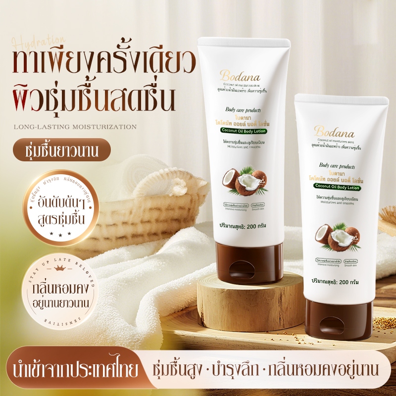 Bodana โลชั่นบำรุงผิวกาย น้ำมันมะพร้าวแท้ หอมหวานมะพร้าวแท้ แ ช่ออนนาน ช่วยล็อกความชื้นได้ดี