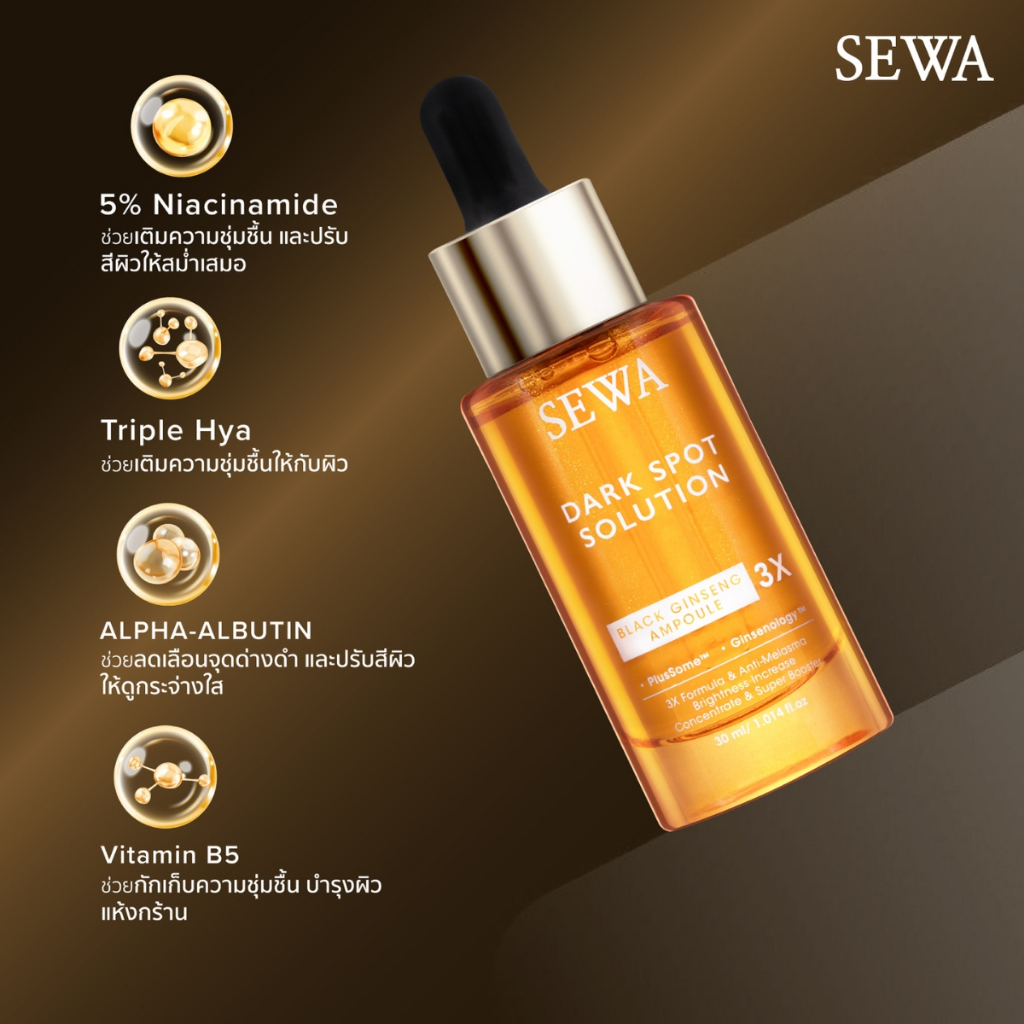 *SALE* Sewa เซวา ดาร์ก สปอต โซลูชั่น แบล็ค จินเส็ง แอนติ-เมลาสม่า แอมพลู 3เอ็กซ์ 15มล. Exp 09/08/27