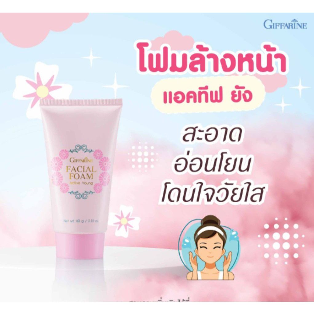 กิฟฟารีนแอคทีฟยัง(วัยรุ่น) โฟมล้างหน้า กันแดด ครีมบำรุงหน้า โลชั่นบำรุงผิวกาย ลดสิว ผิวเนียน ผิวใส