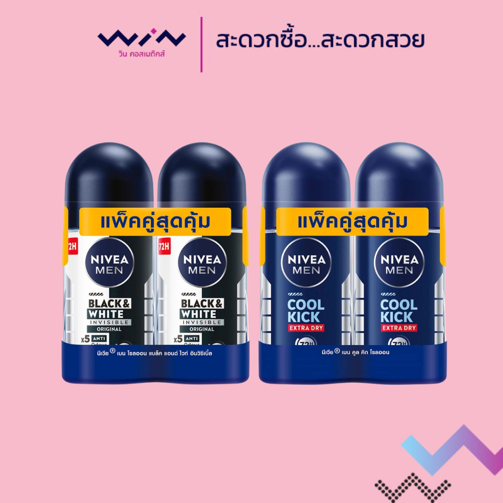 [แพ็คคู่] Nivea Men นีเวีย เมน โรลออนลดเหงื่อ ระงับกลิ่นกาย สำหรับผู้ชาย 50 มล.