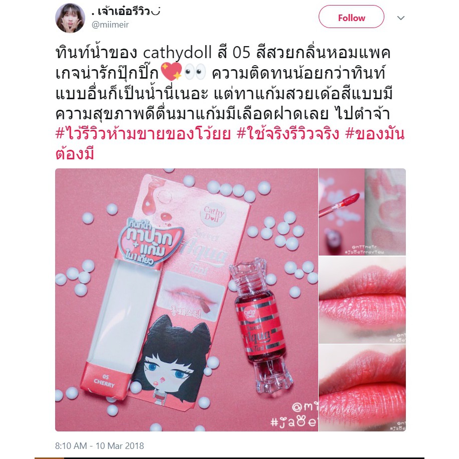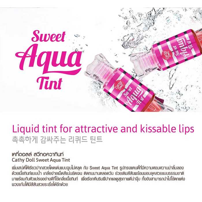 ลิปทินท์ กันน้ำ สีสวยฉ่ำ ติดนานตลอดวัน Cathy Doll Juicy Tint VitC + Q10 + Collagen 7.5g