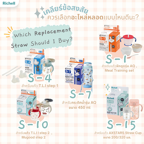 Richell(ริเชลล์) อะไหล่หลอดแก้วน้ำRichell รุ่น AXSTARS Straw Cup 200/320 มล. (Straw Set S-15)