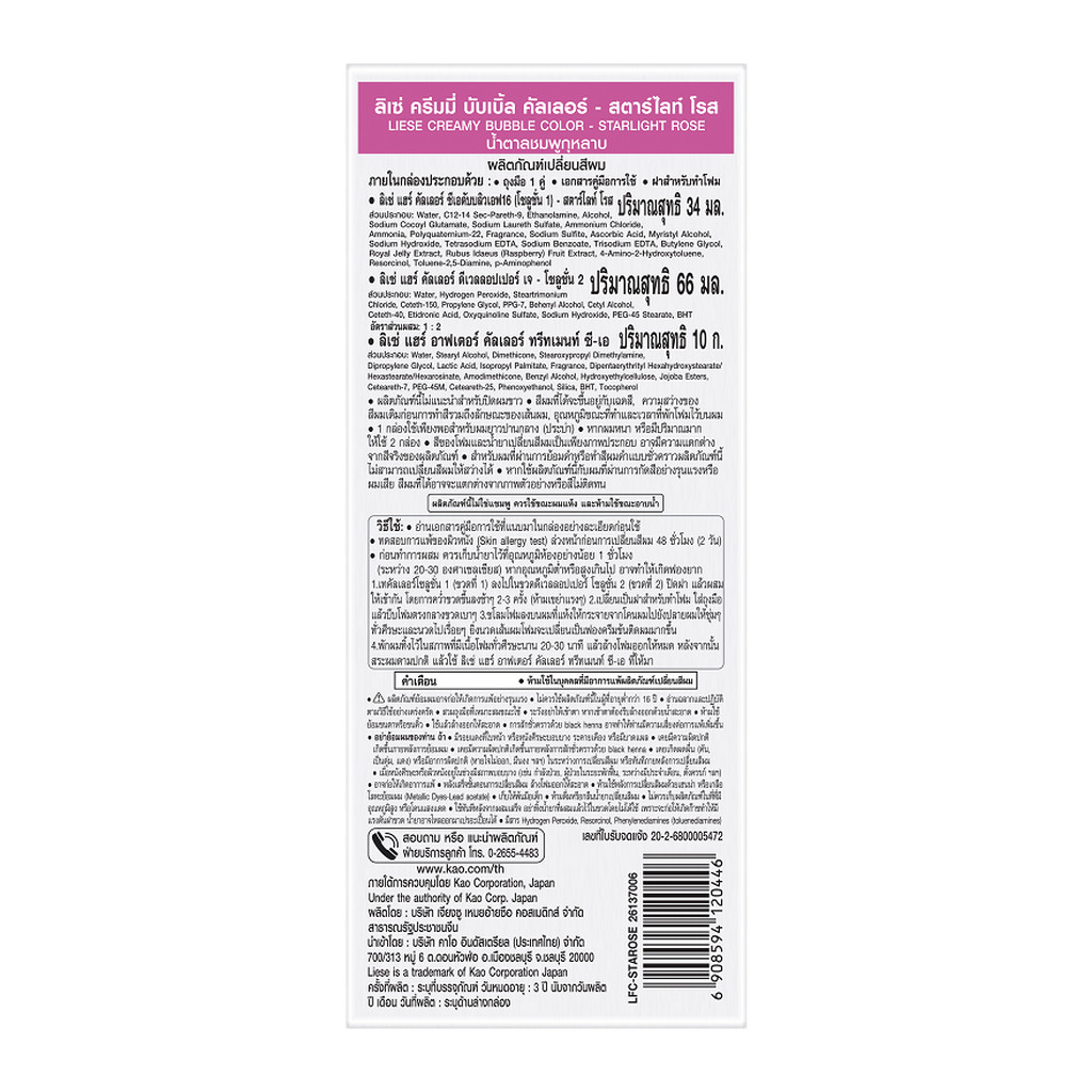 Liese ลิเซ่ ครีมมี่ บับเบิ้ล คัลเลอร์ สตาร์ไลท์ โรส น้ำตาลชมพูกุหลาบ